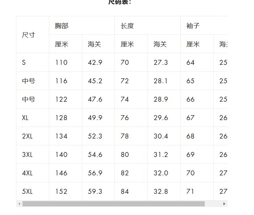 S; M; L; XL; XXL; XXXL; XXXXL; 5XL