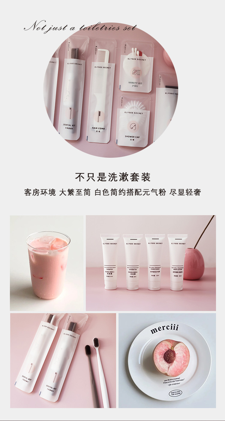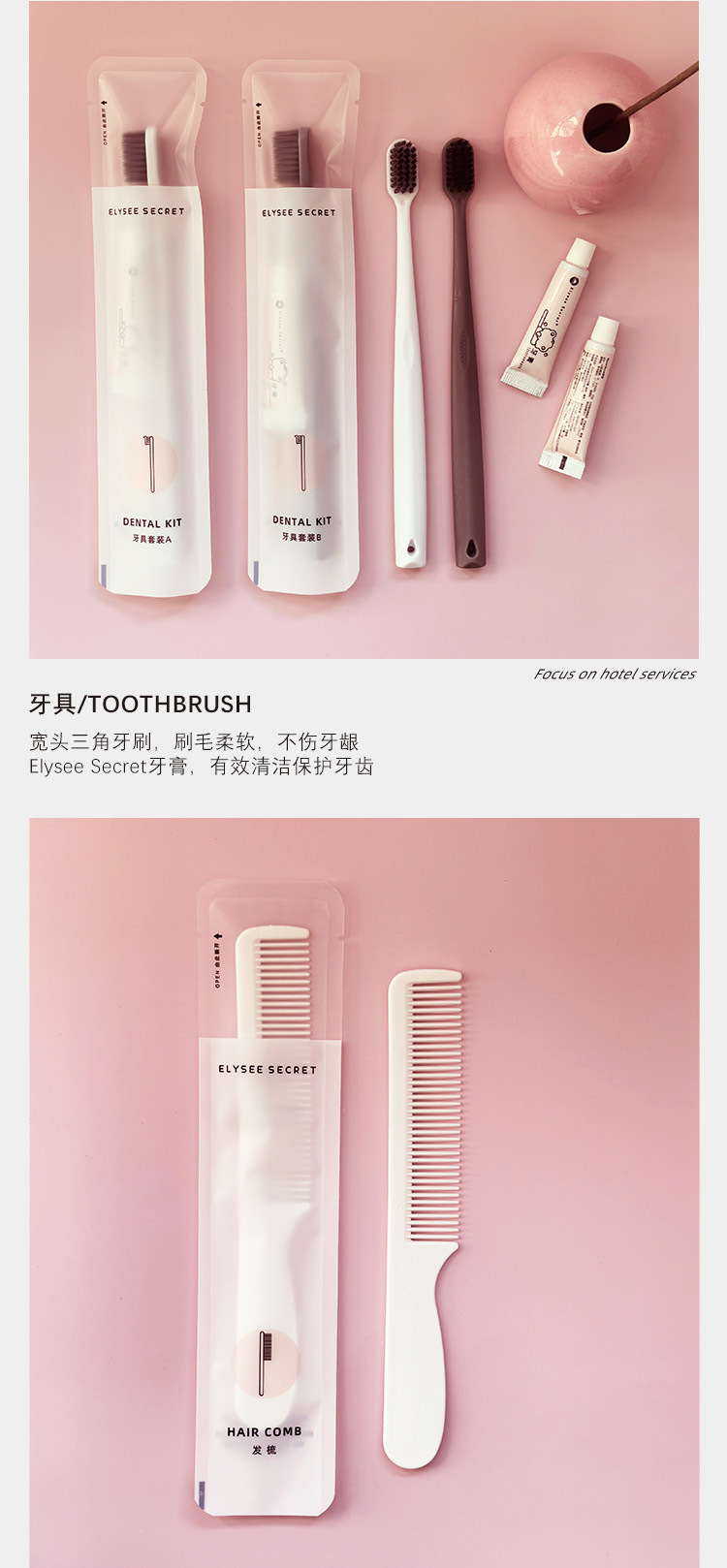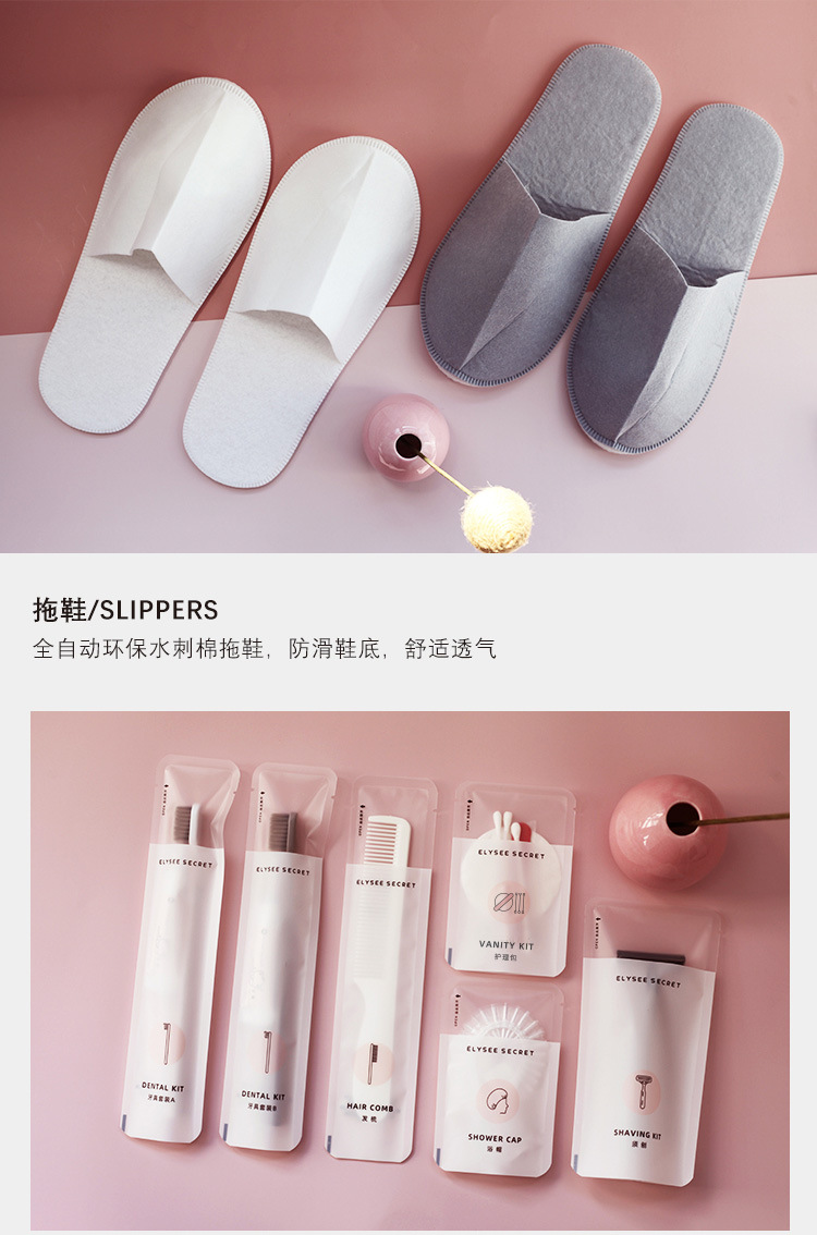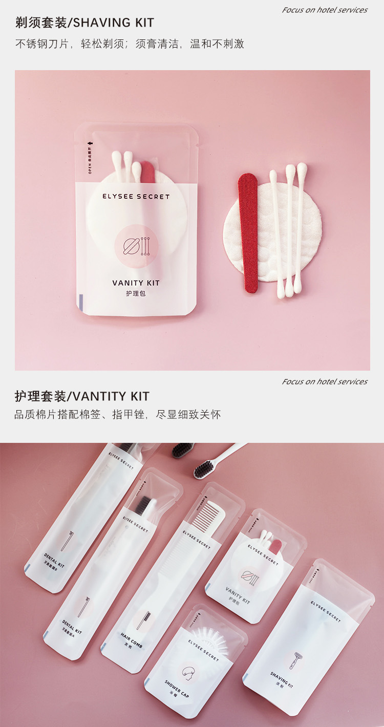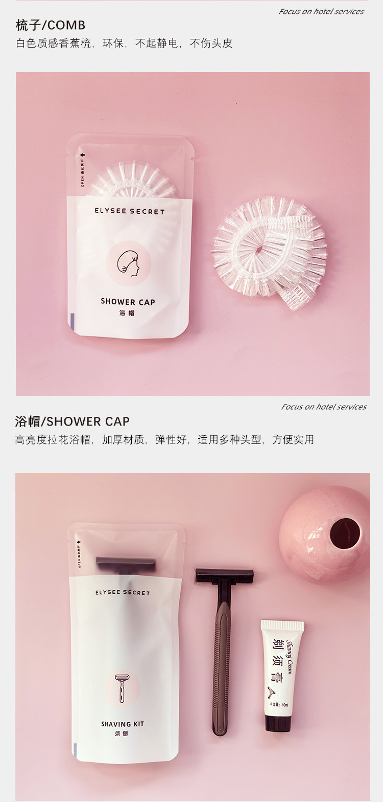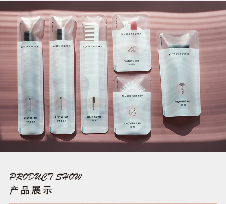 Зубная щетка A [белая треугольная зубная щетка с широкой головкой + секретная зубная паста Elesee 5 г]; Зубная щетка B [Срая треугольная зубная щетка с широкой головкой + 5 г Секретная зубная паста Elysee]; Расческа [белая матовая расческа для большого пальца]; Шапочка для душа [Шапочка для душа Latte Art высокой яркости]; Пакет для кормления [1 шт., 3 палочки, 1 комплект]; Набор для бритья [бритва с серой ручкой + мазь 10 г]; Мыло [круглое мыло 25 г]; Шампунь [30 мл Elysee Secret Series]; Гель для душа [30 мл Elysee Secret Series]; Кондиционер [30 мл Elysee Secret Series]; Увлажняющий лосьон [30 мл Elysee Secret Series]; Тапочки А [серые хлопковые тапочки спанлейсом]; Тапочки B [белые хлопковые тапочки спанлейсом]; Набор из четырех предметов; Набор из шести предметов; набор из семи предметов; Набор из девяти предметов; Набор издинаковых предметов; Набор из тринадцати предметов