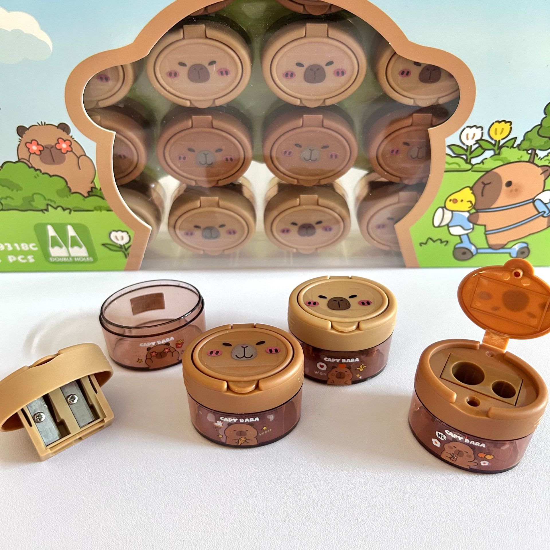Новая мультяшная точилка для карандашей капибала с двойным отверстием для учащихся начальной школы, универсальная милая мини-портативная точилка для карандашей капибары