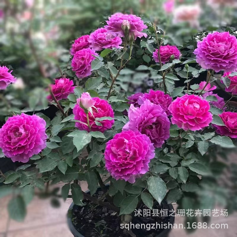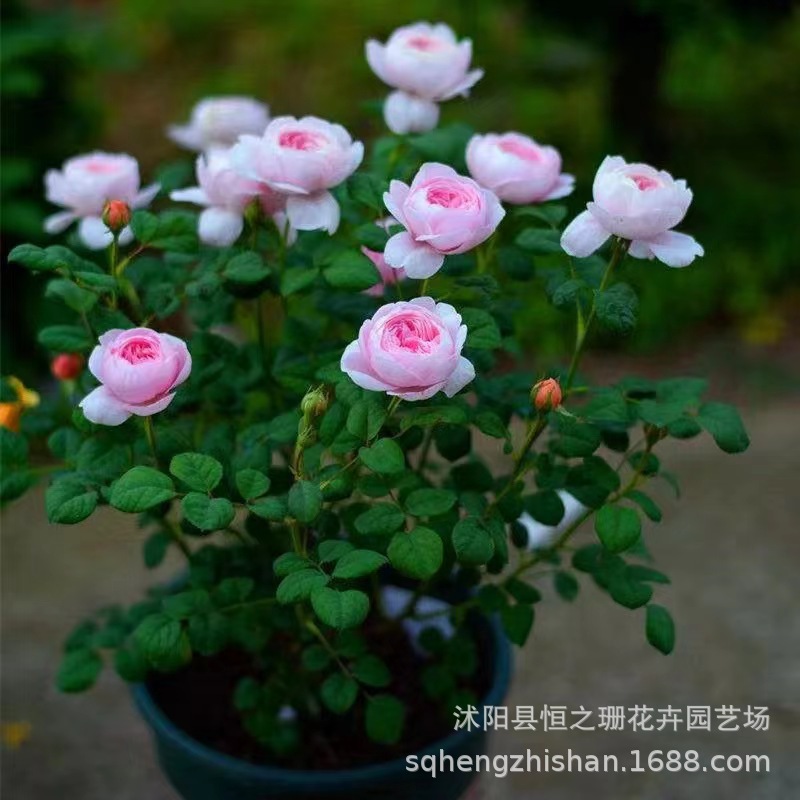 Розовое растение в горшках четыре сезона цветущие кусты большие саженцы, большие цветы