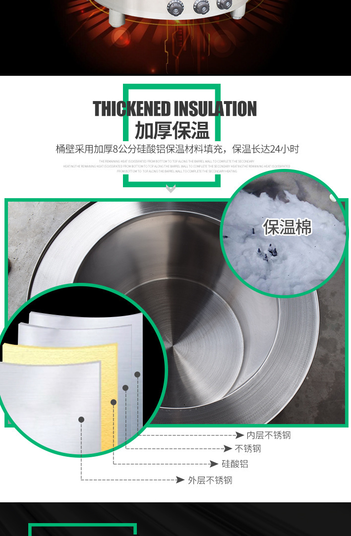 Электрическое тепло энергосберегающее ведро для супа Коммерческое хранение тушеного мяса крупного рогатого скота, овец, курицы и утки, вареная каша, белая сталь плоская вогнутая кастрюля