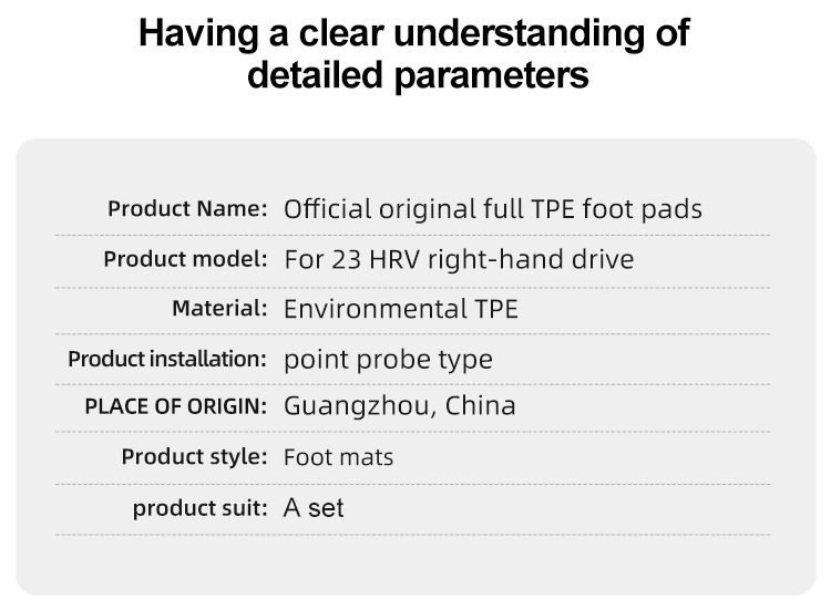 Подходит для 23 моделей автомобилей Honda HR-V с правым рулем, водонепроницаемые коврики из TPE, индивидуально подобранные автомобильные коврики для трансграничных продаж.