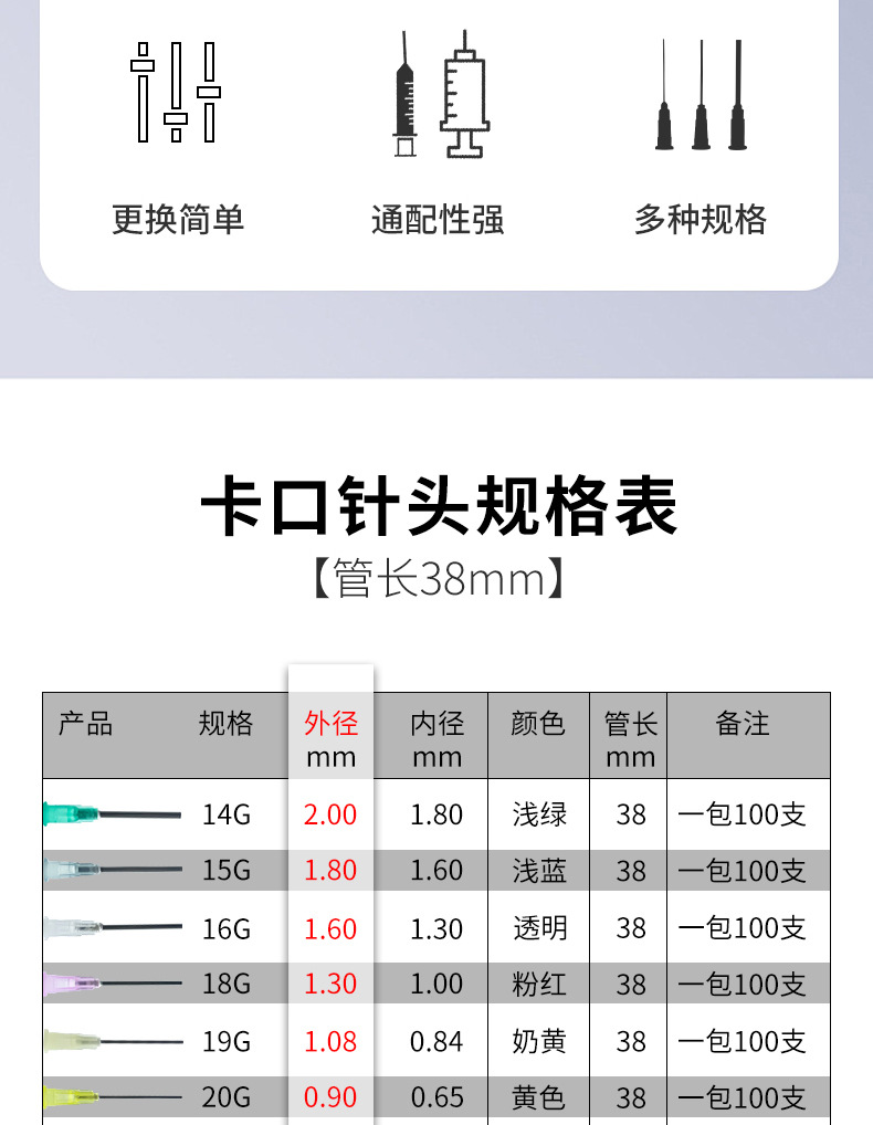 Байонетная трубка 14G, длина 38 мм, 1 упаковка/100 шт. (светло-зеленая); Байонетная трубка 15G, длина 38 мм, 1 упаковка/100 шт. (светло-голубой); Байонетная трубка 16G, длина 38 мм, 1 упаковка/100 шт (белая); Байонетная трубка 18G, длина 38 мм, 1 упаковка/100 шт (розовый); Байонетная трубка 19G, длина 38 мм, 1 упаковка/100 шт. (бежевая); Байонетная трубка 20G, длина 38 мм, 1 упаковка/100 шт (желтый); Байонетный тюбик 21G длина 38 мм 1 упаковка/100 шт (зеленый); Байонет 22G длина трубки 38 мм 1 упаковка/100 шт (черный); Байонетная трубка 23G, длина 38 мм, 1 упаковка/100 шт. (синяя); Байонетная трубка 24G, длина 38 мм, 1 упаковка/100 шт (фиолетовая); Байонетная трубка 25G, длина 38 мм, 1 упаковка/100 шт (оранжевая); Байонетная трубка 26G, длина 38 мм, 1 упаковка/100 шт (светло-коричневая); Байонетная тюбик 27G, длина 38 мм, 1 упаковка/100 шт. (серый)