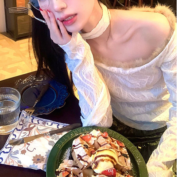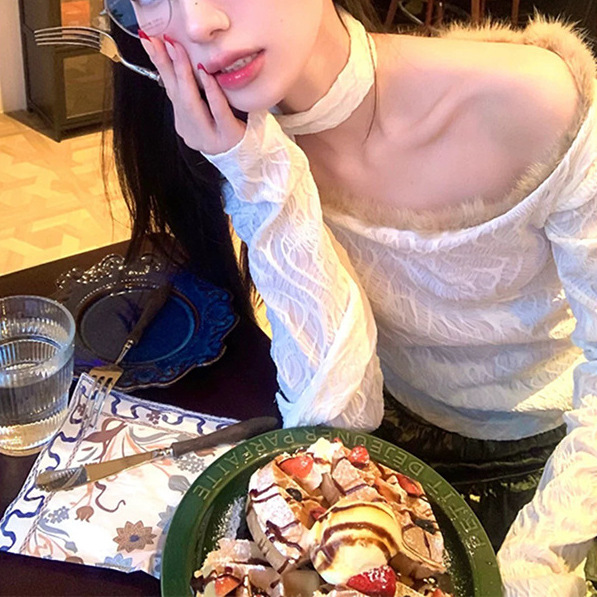 Стильная темпераментная нижняя рубашка французская шерстяная обшивка