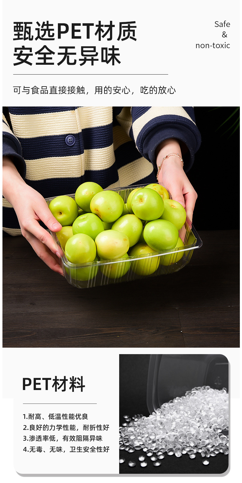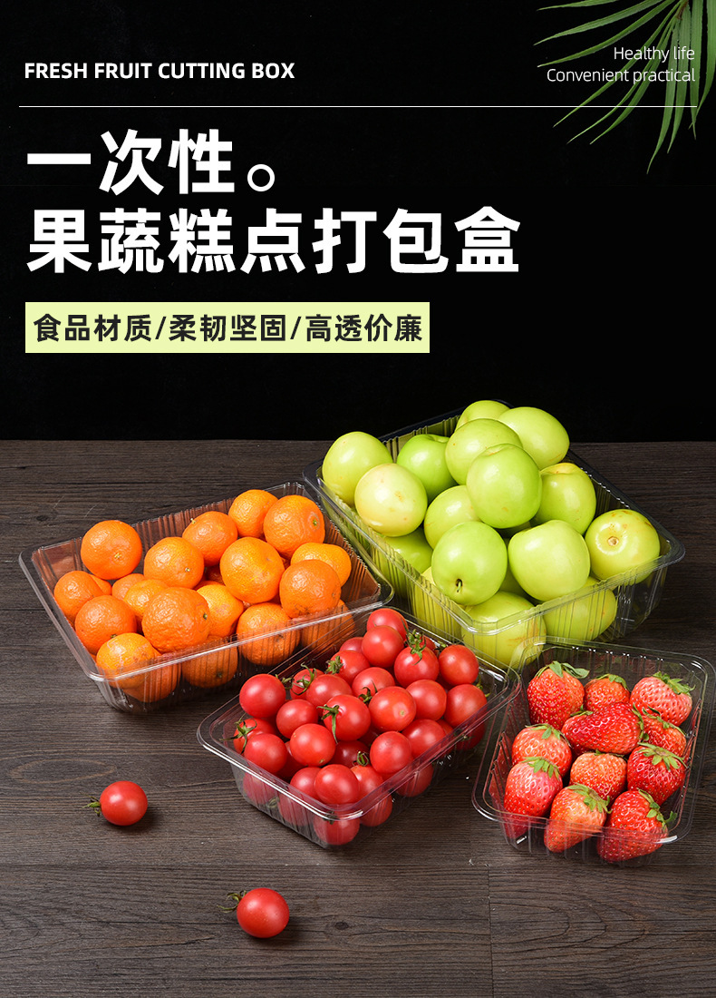 Прямоугольная утолщенная одноразовая коробка без крышки прозрачная пластиковая коробка для фруктов и овощей