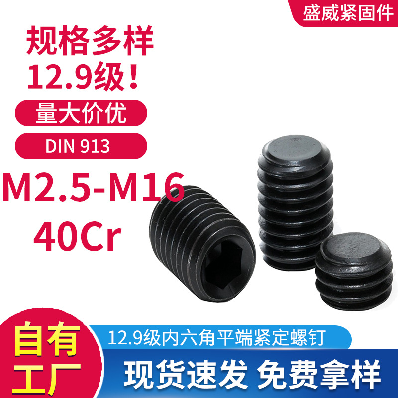 12.9 Класс высокой прочности черный плоский бесголовый рисовый винт натягивает внутренний шестигранный винт верхней проволоки M3M4M5M6