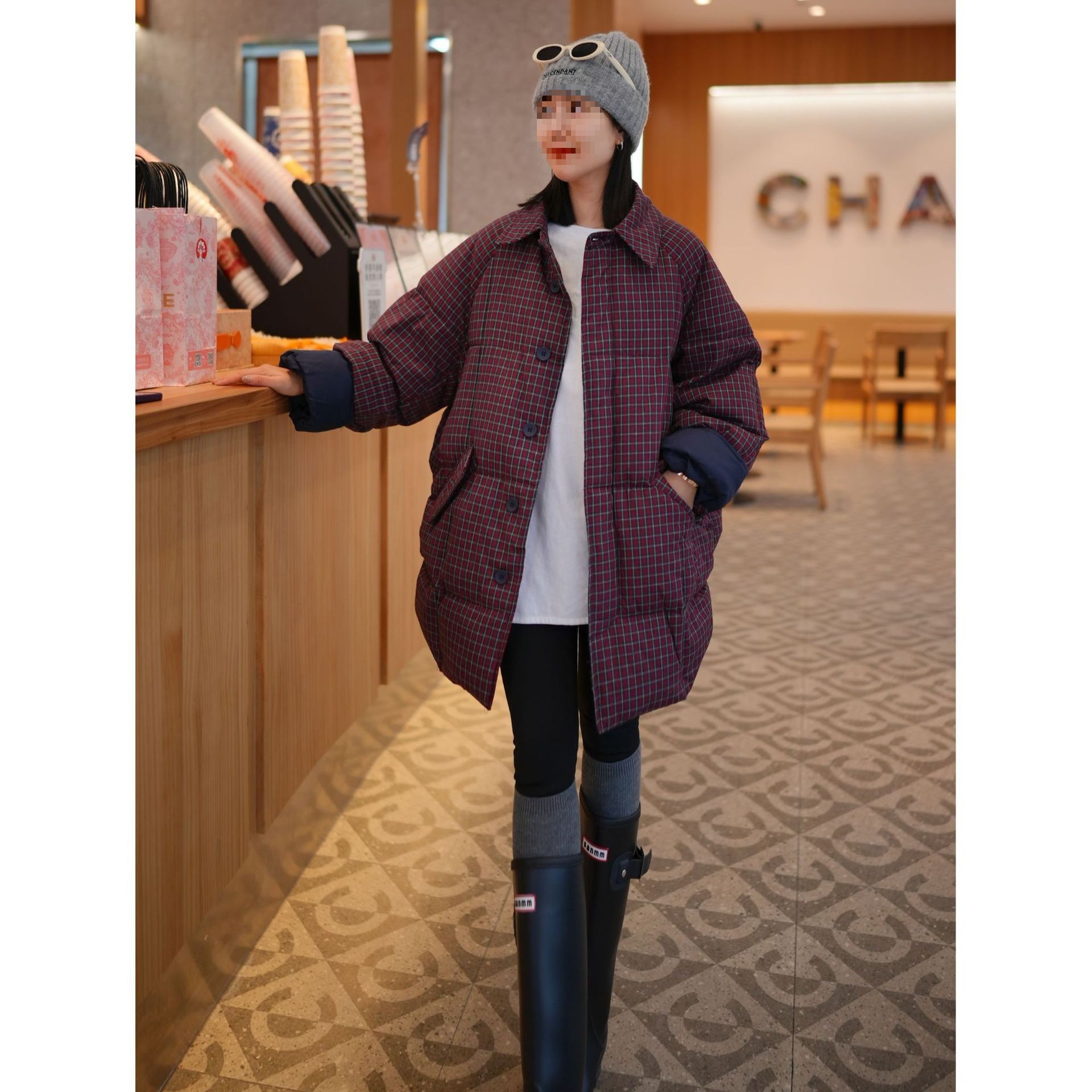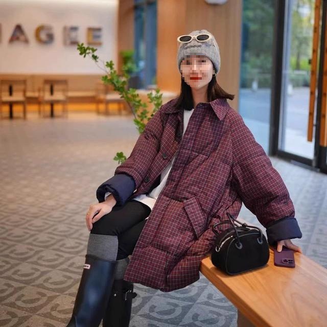 Новая европейская свободная средняя длинная рубашка повседневная вата в клетку хлопчатобумажная куртка зимой 2024 года