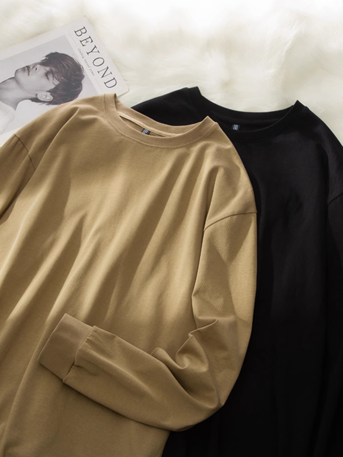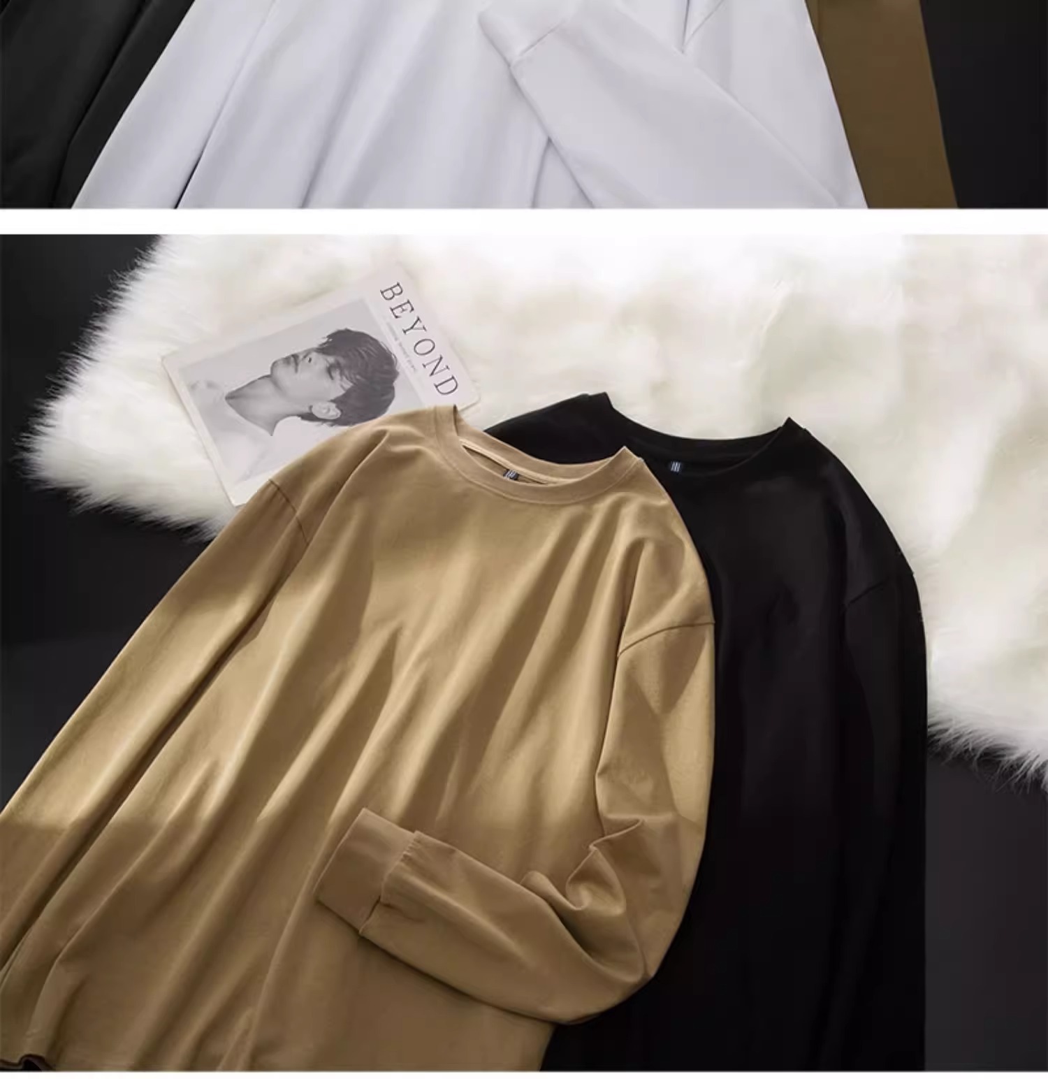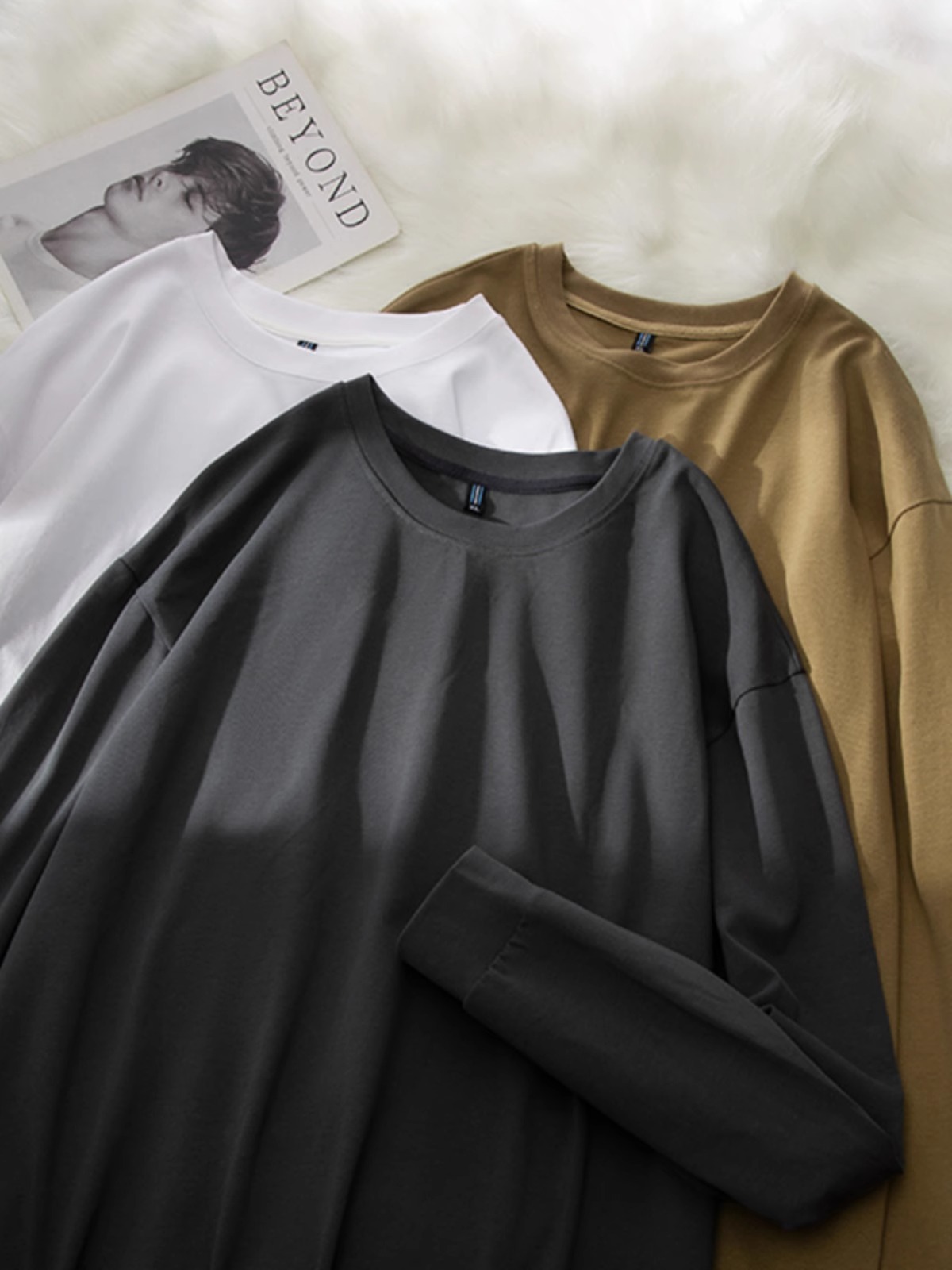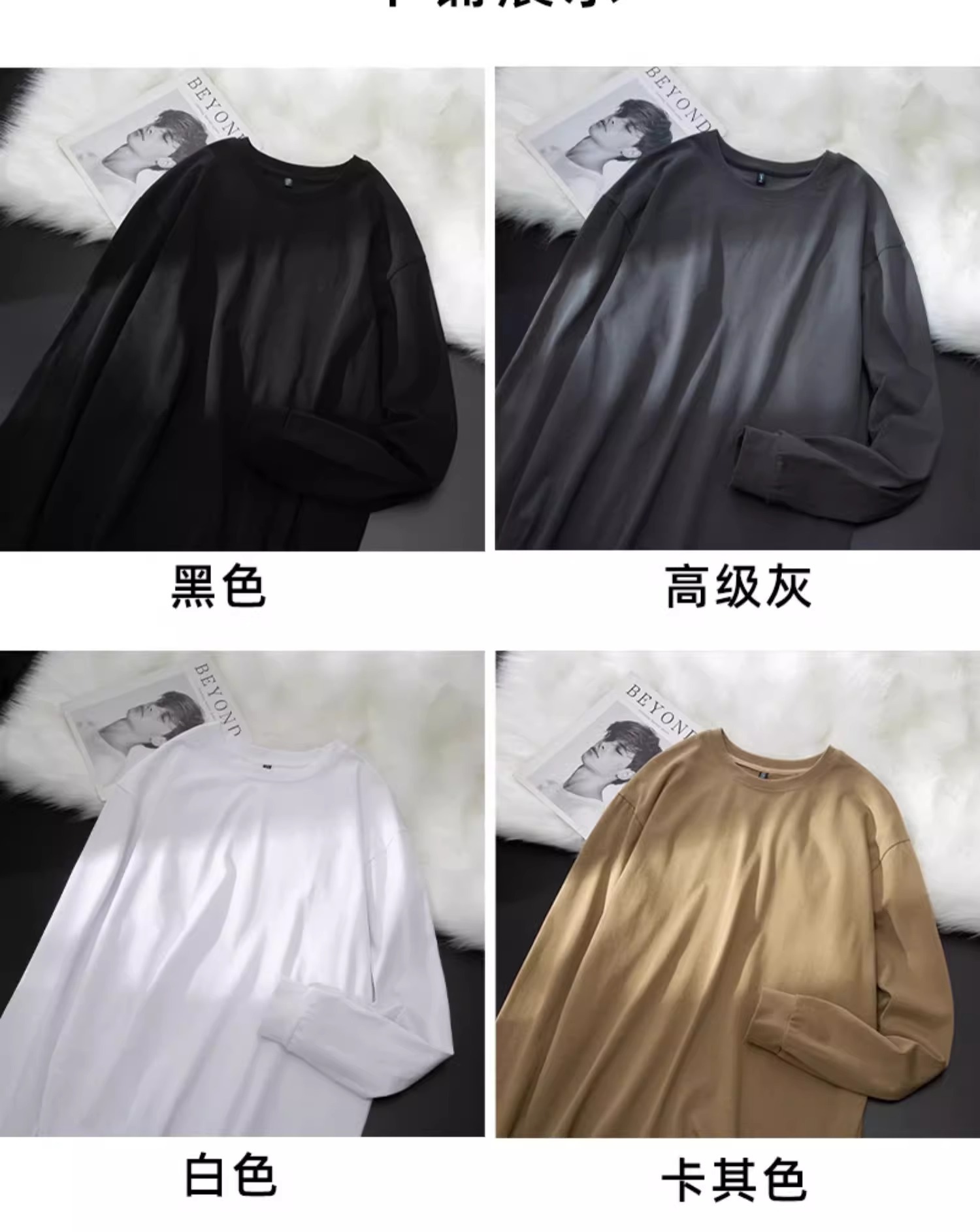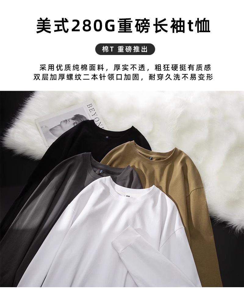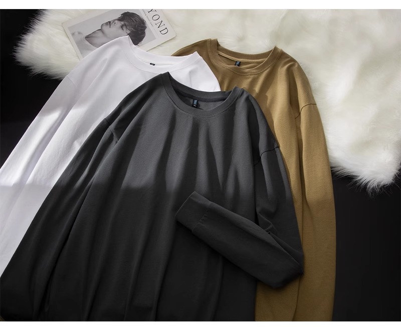 Черная плотная футболка с длинными рукавами (DDS7779); Серая плотная футболка с длинными рукавами премиум-класса (DDS7779); Белая плотная футболка с длинными рукавами (DDS7779); Хаки Тяжелая футболка с длинными рукавами (DDS7779)