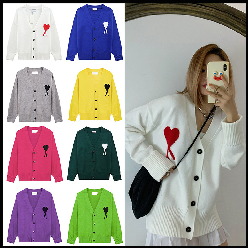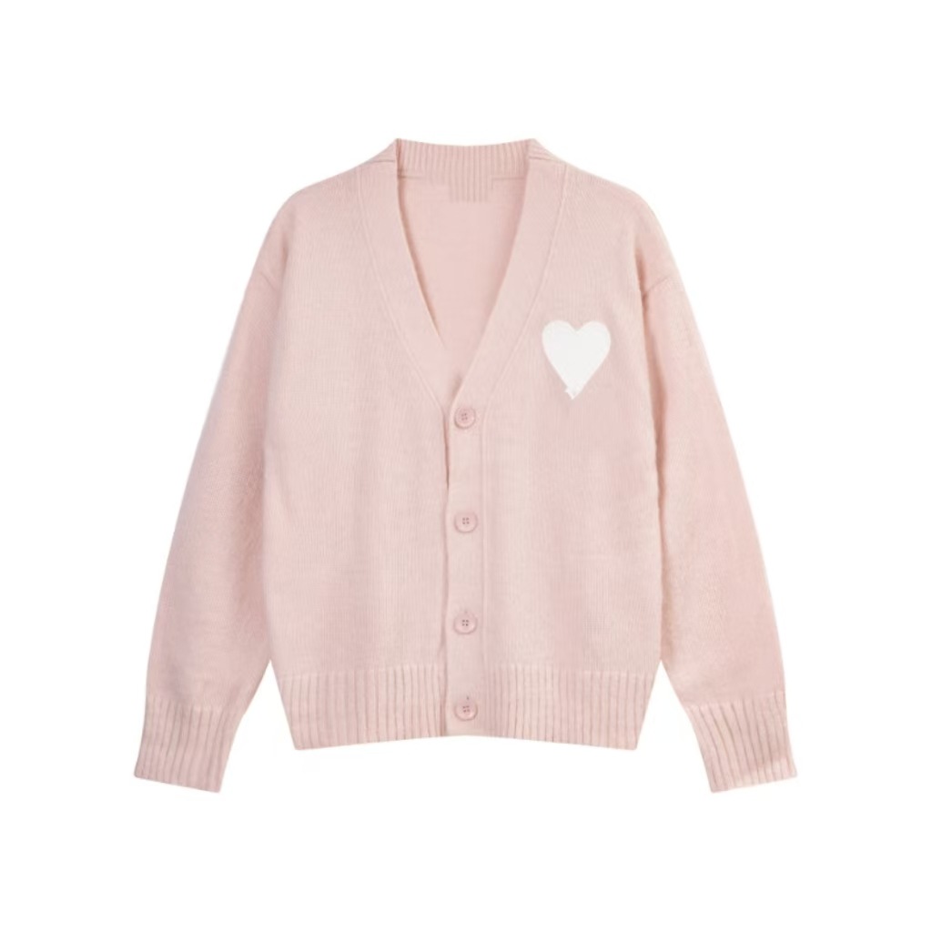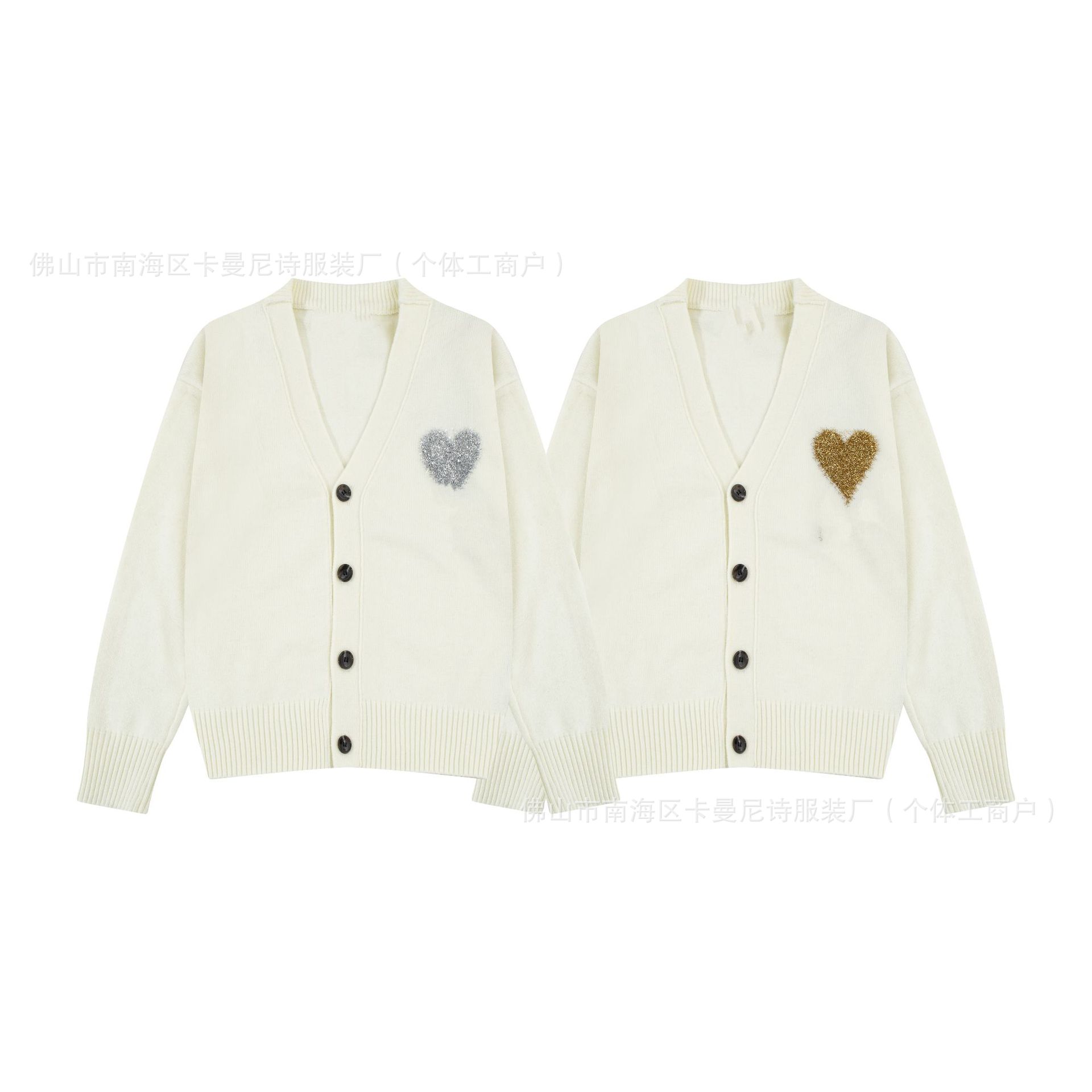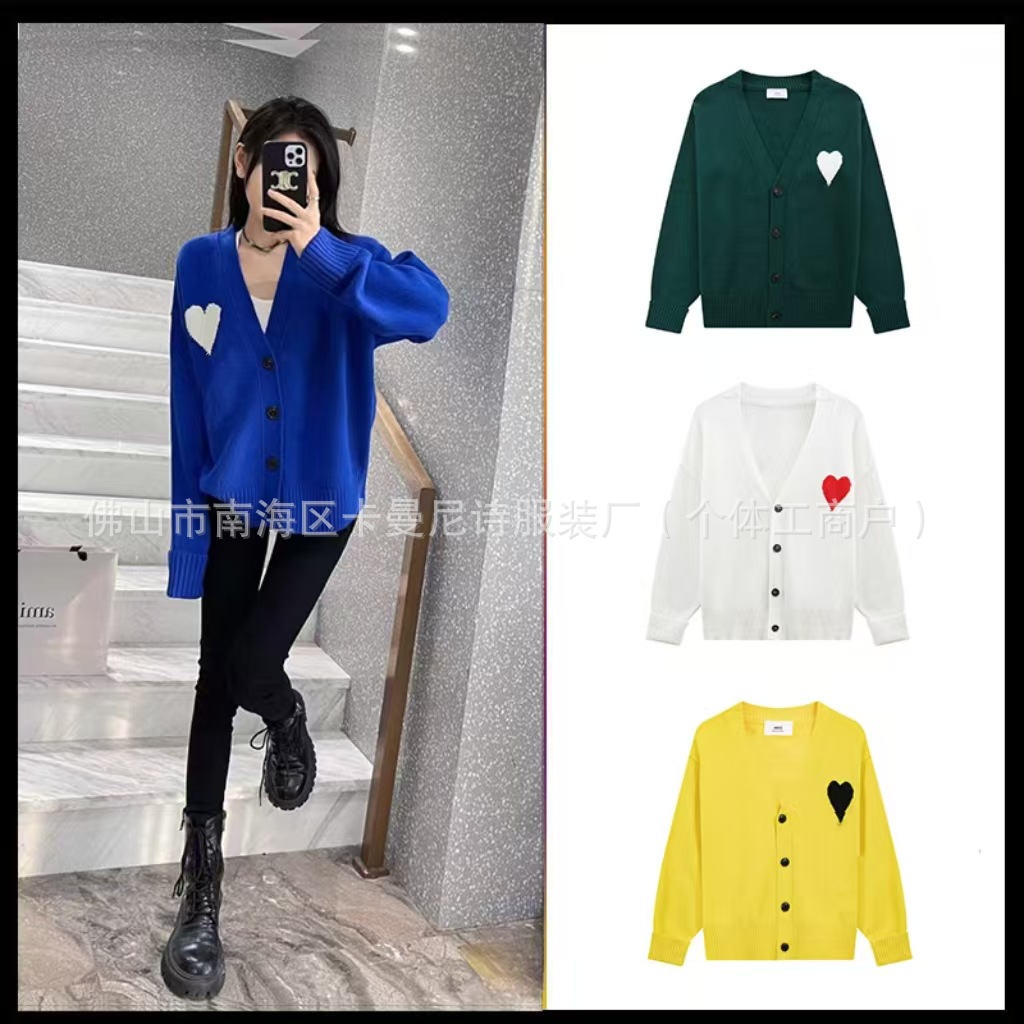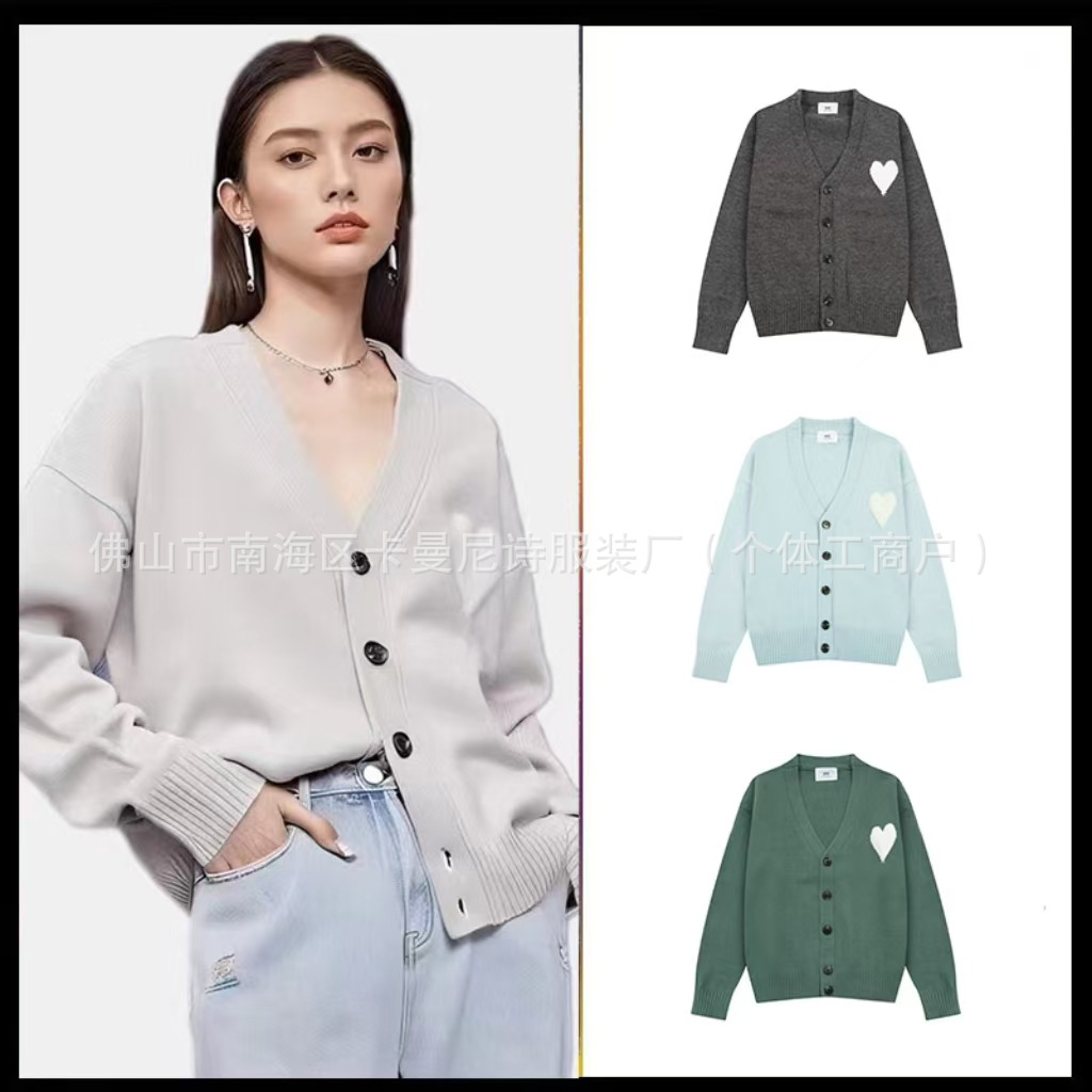 Трансграничное поколение приливов бренда Am1 свитер большой персик сердце жаккард V-образный кардиган повседневный свободный ленивый стиль пара пальто