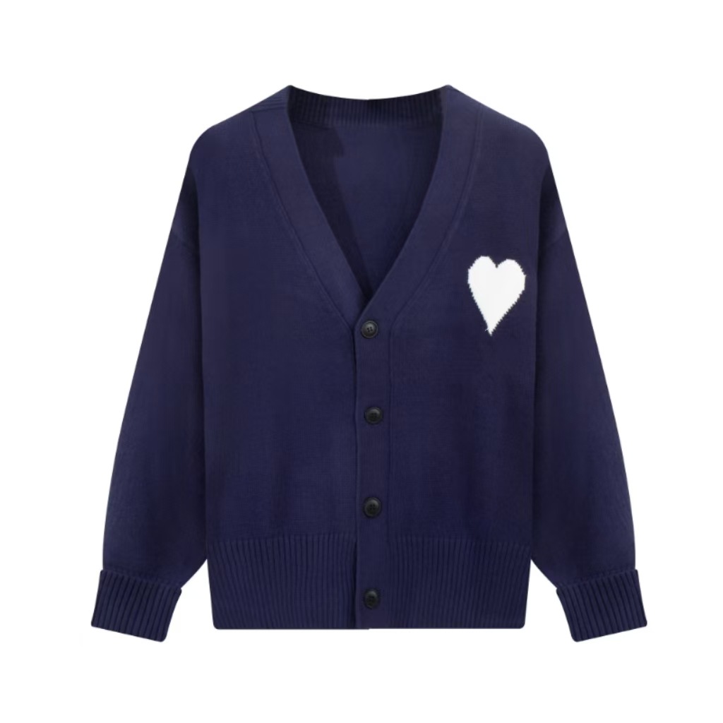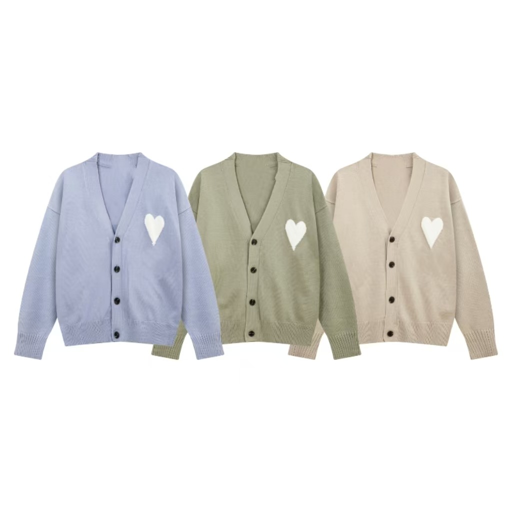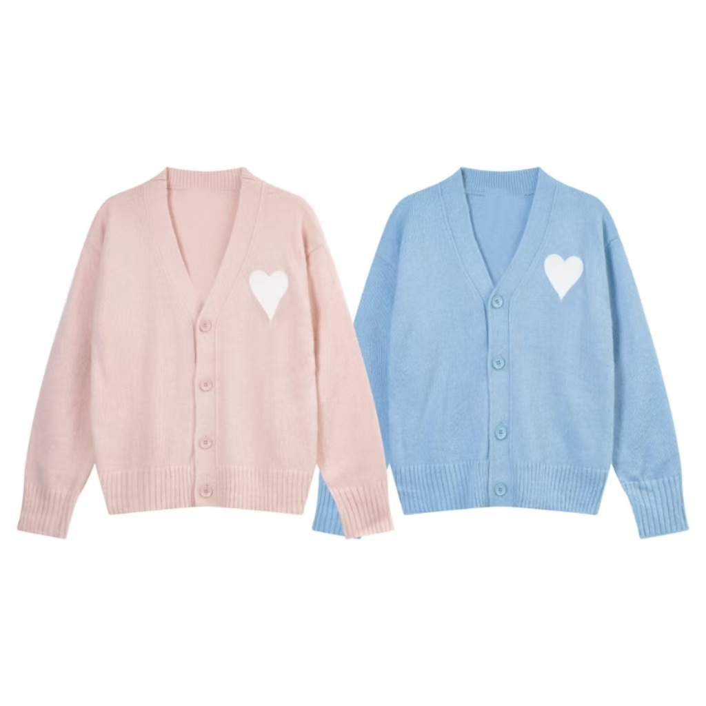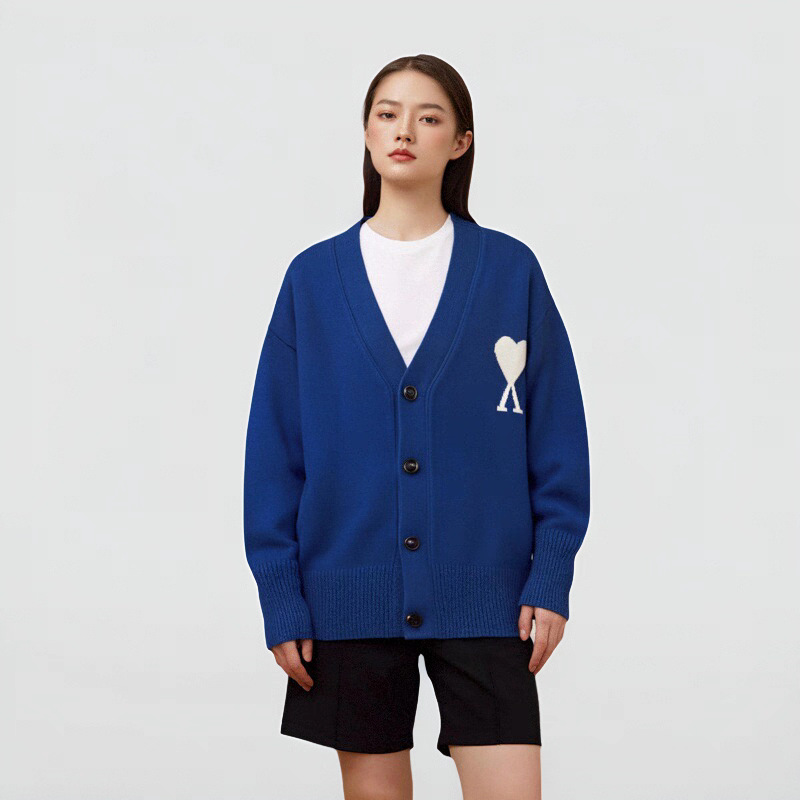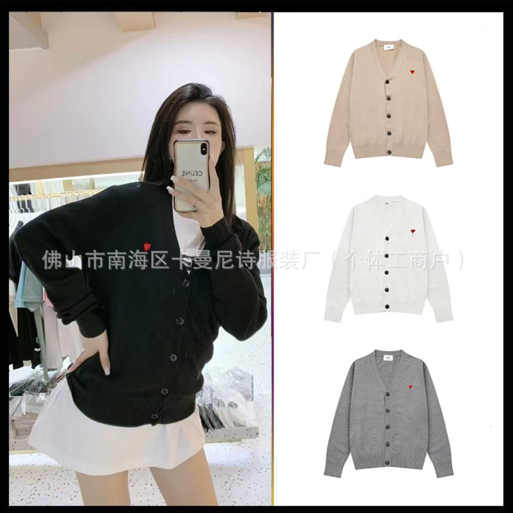 Трансграничное поколение приливов бренда Am1 свитер большой персик сердце жаккард V-образный кардиган повседневный свободный ленивый стиль пара пальто
