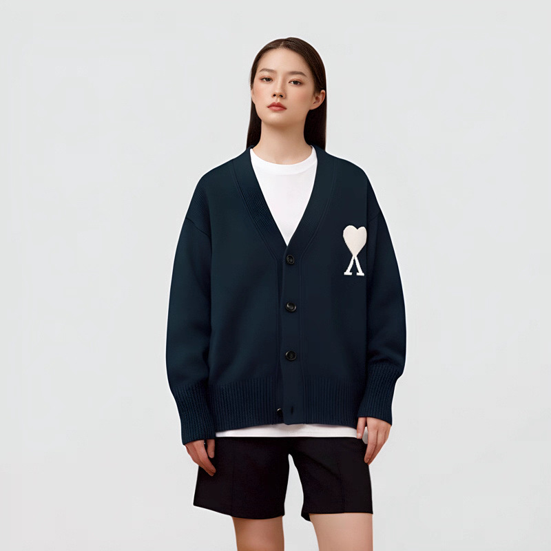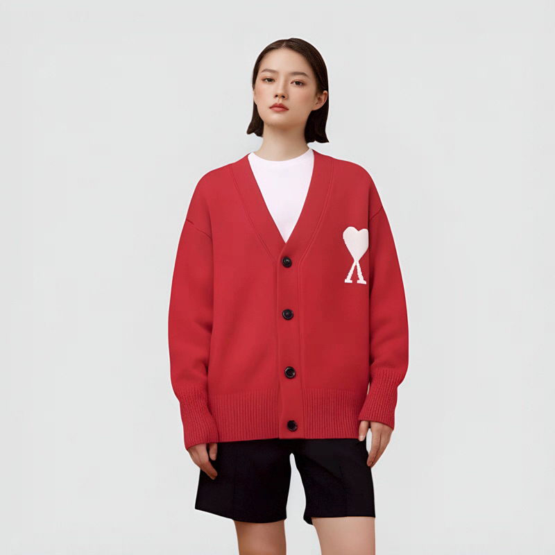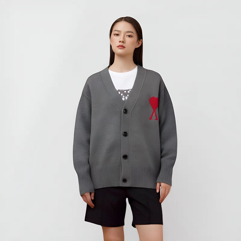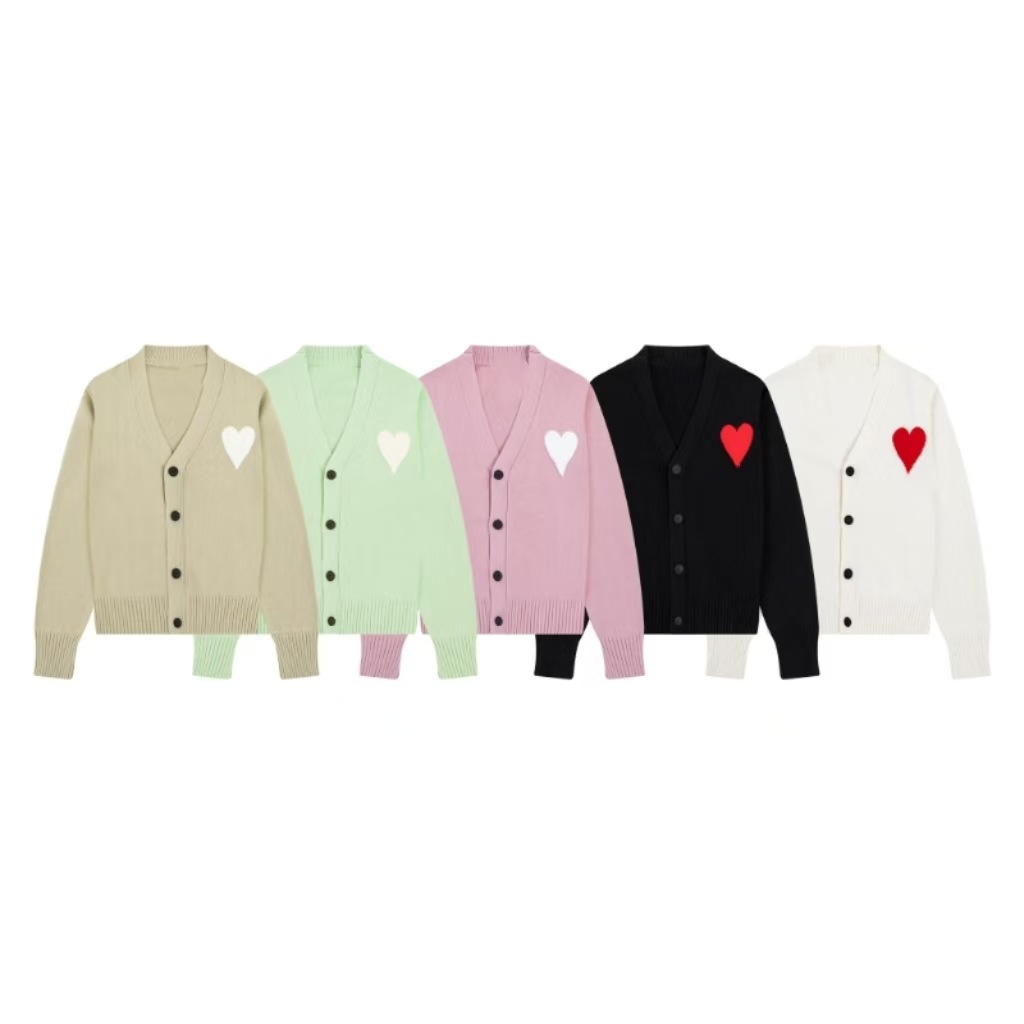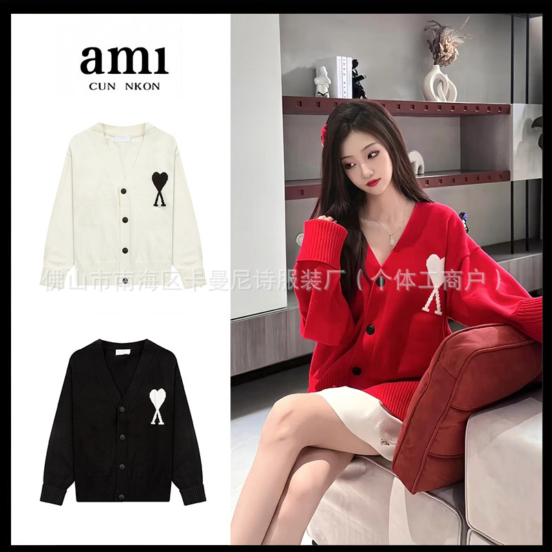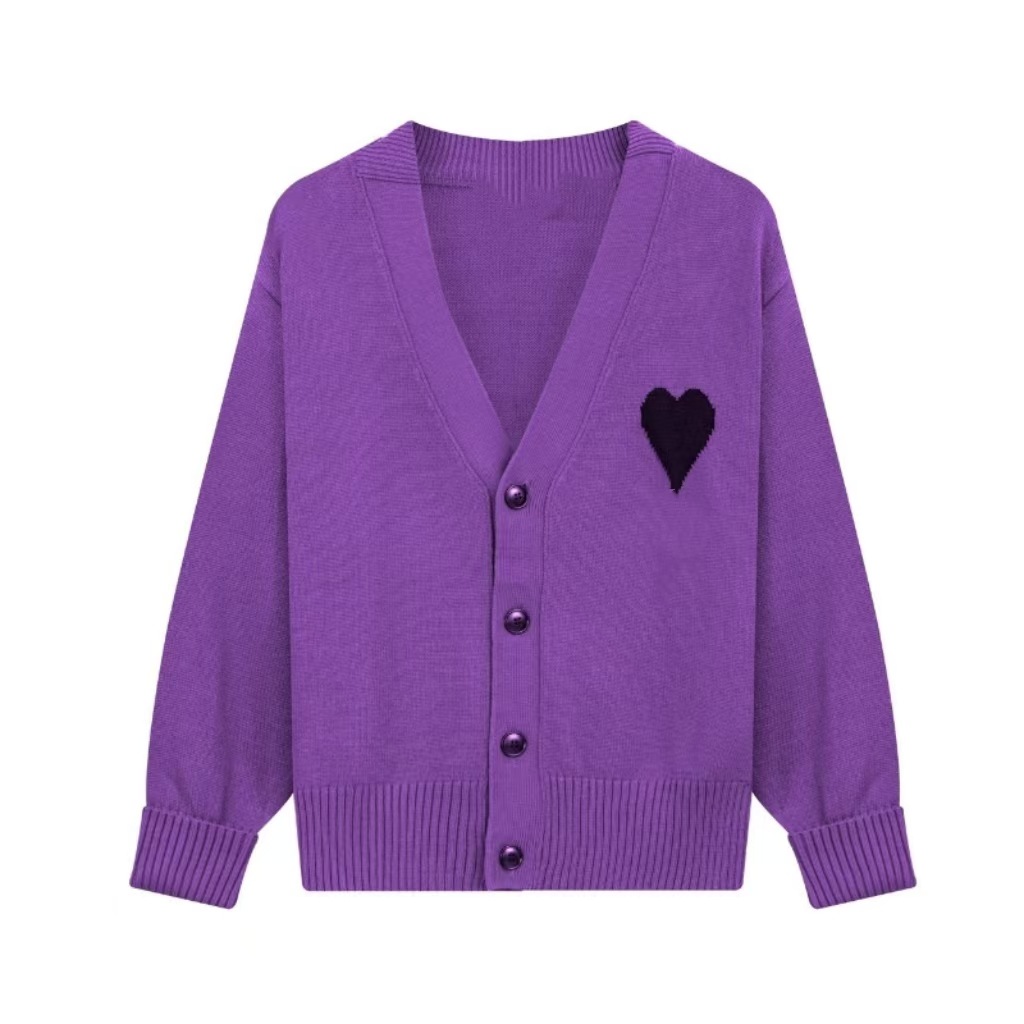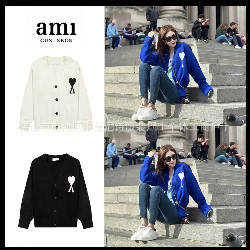 Трансграничное поколение приливов бренда Am1 свитер большой персик сердце жаккард V-образный кардиган повседневный свободный ленивый стиль пара пальто