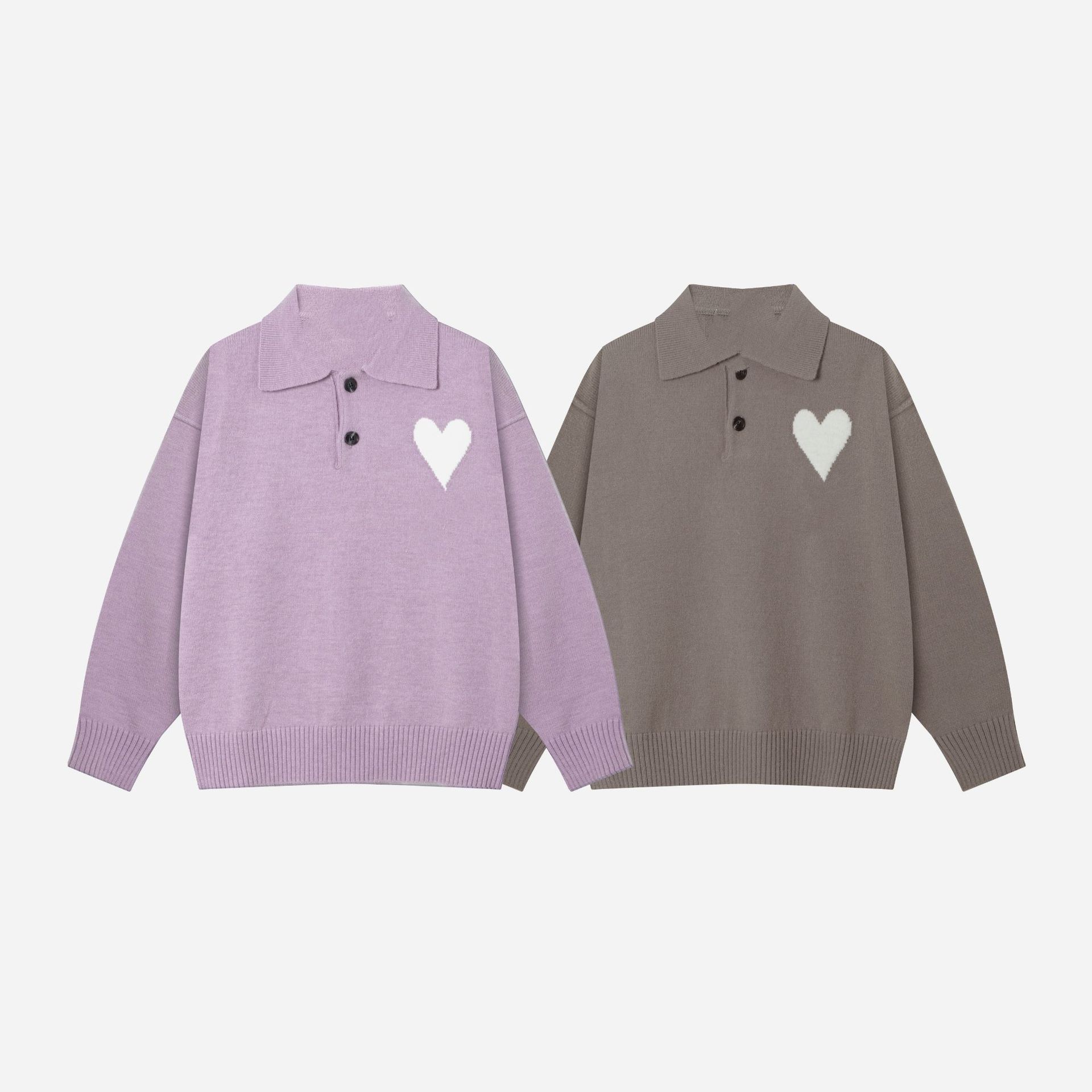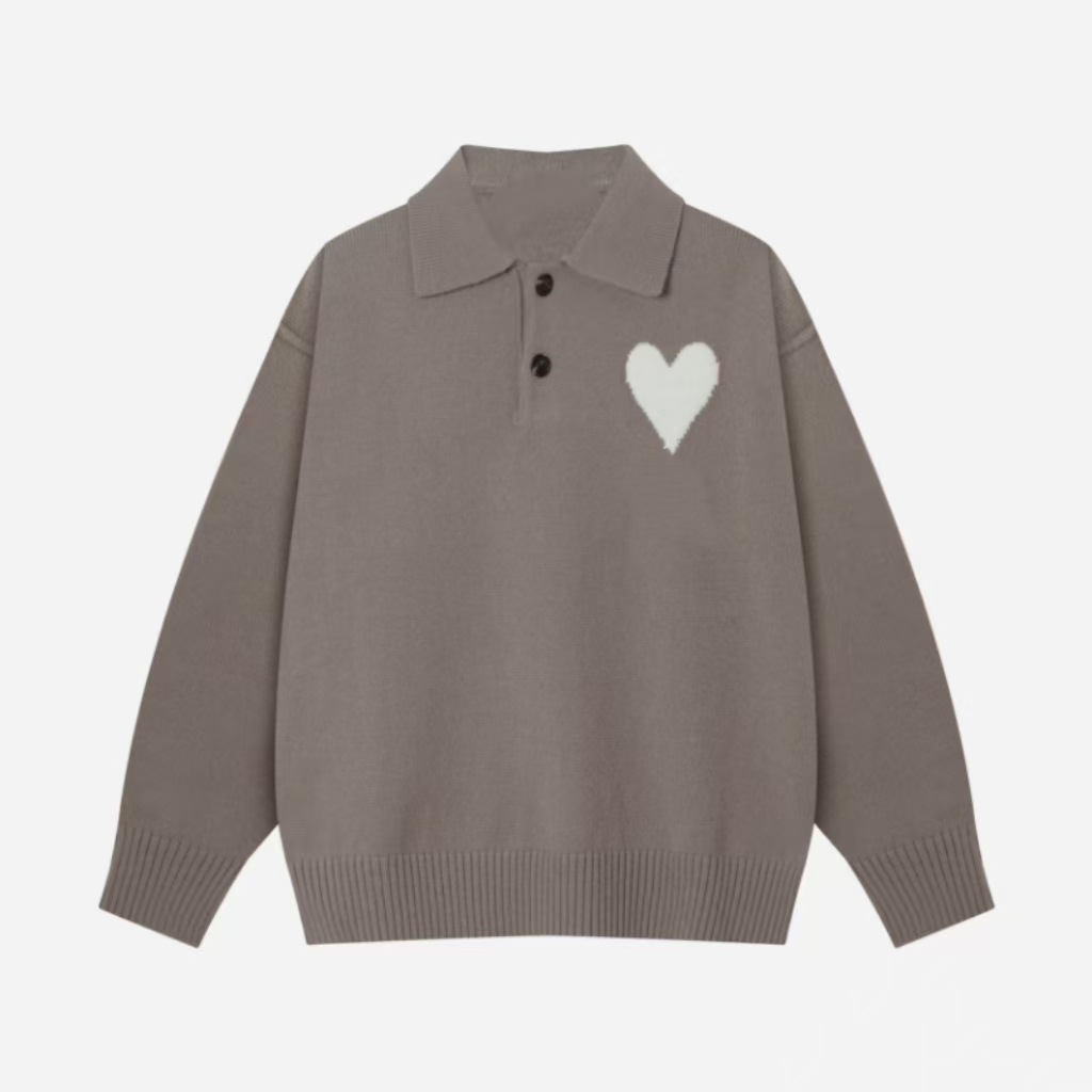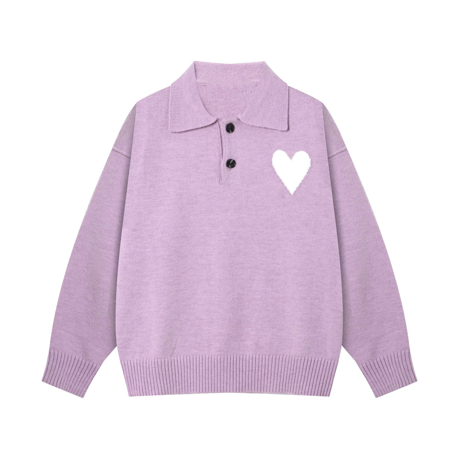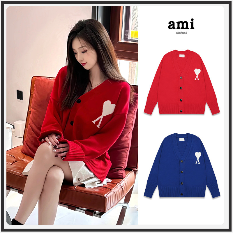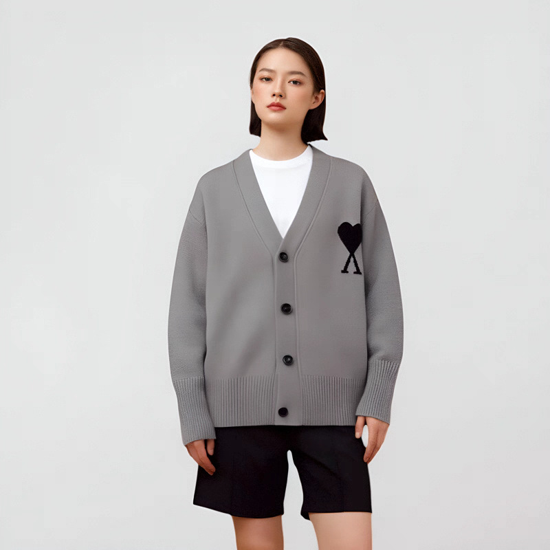 Трансграничное поколение приливов бренда Am1 свитер большой персик сердце жаккард V-образный кардиган повседневный свободный ленивый стиль пара пальто