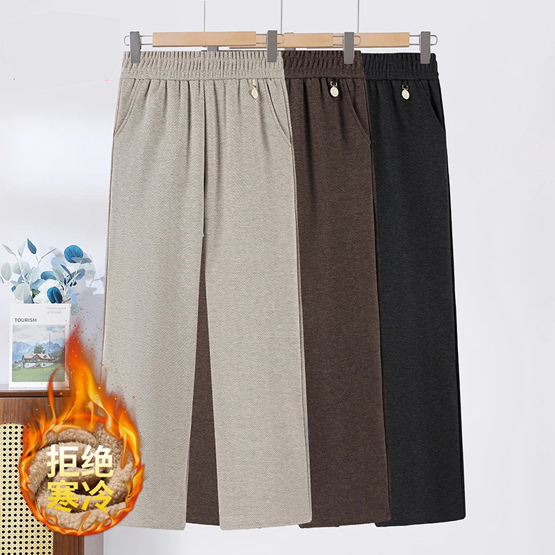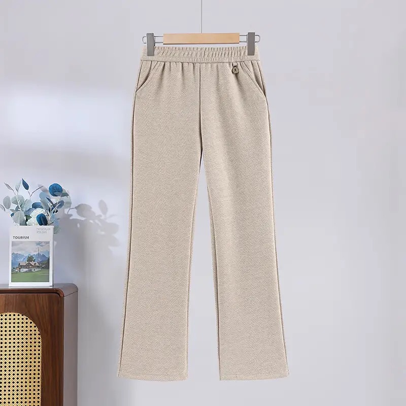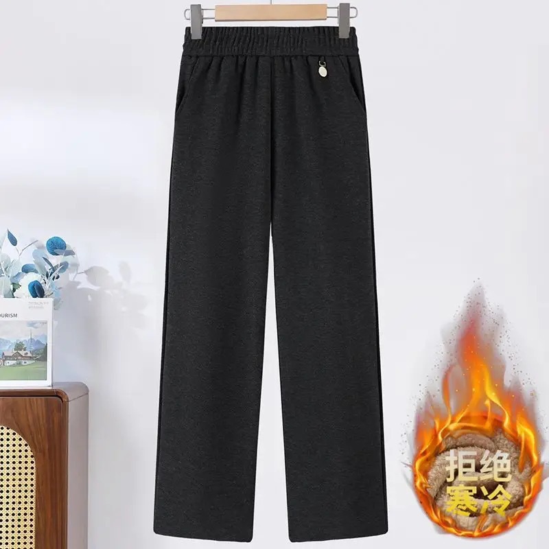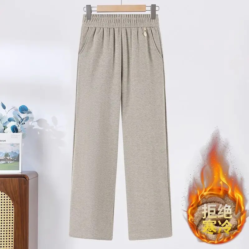 Встряхивая повседневные брюки женские зимние 2025 новые бархатные теплые эластические талии