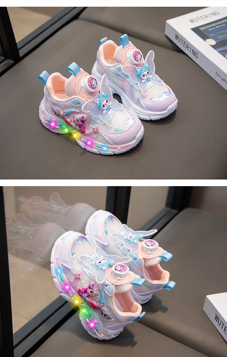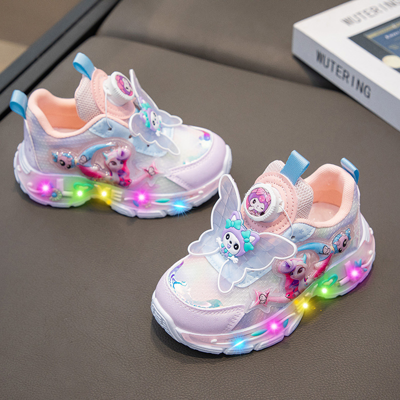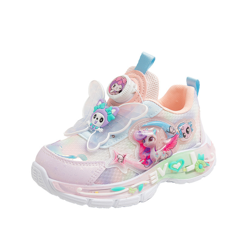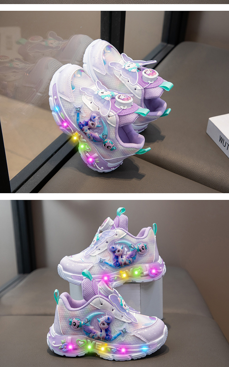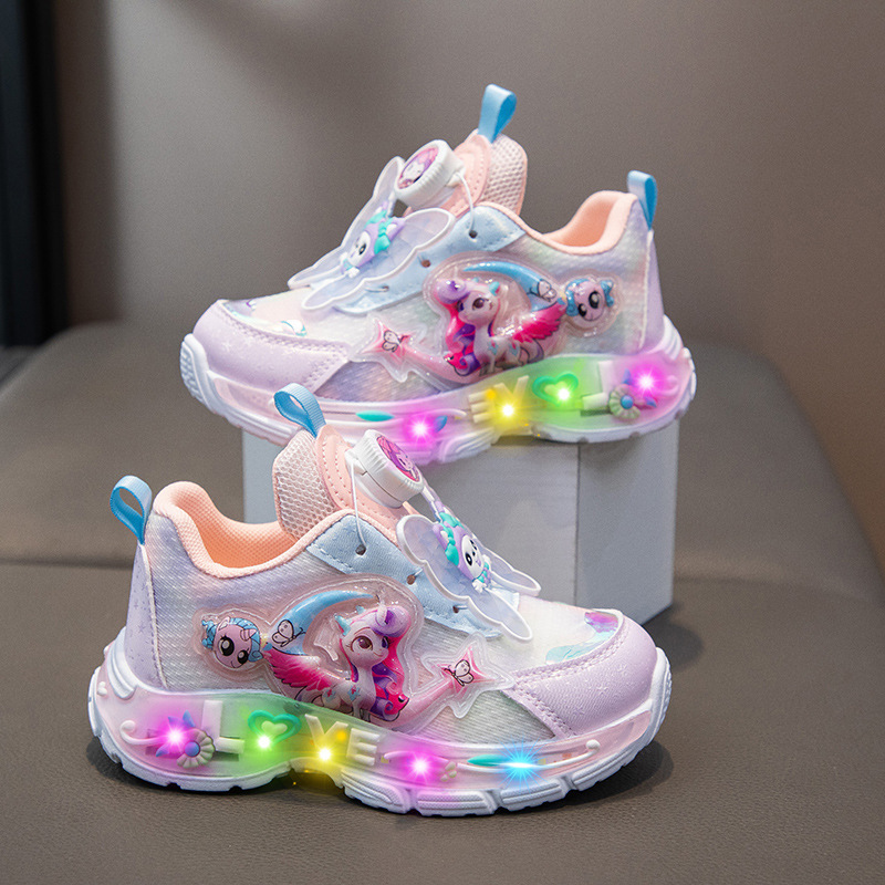 Детская новая мультяшная светящаяся обувь пони Поли светящаяся обувь для девочек кампусная обувь весенняя сетчатая спортивная обувь