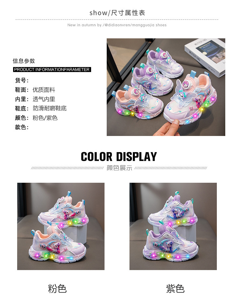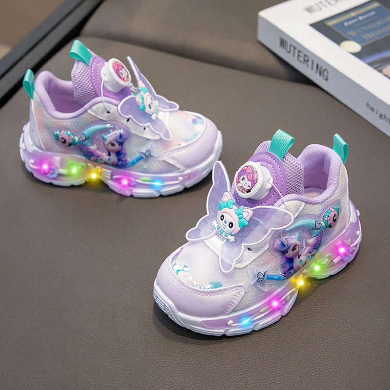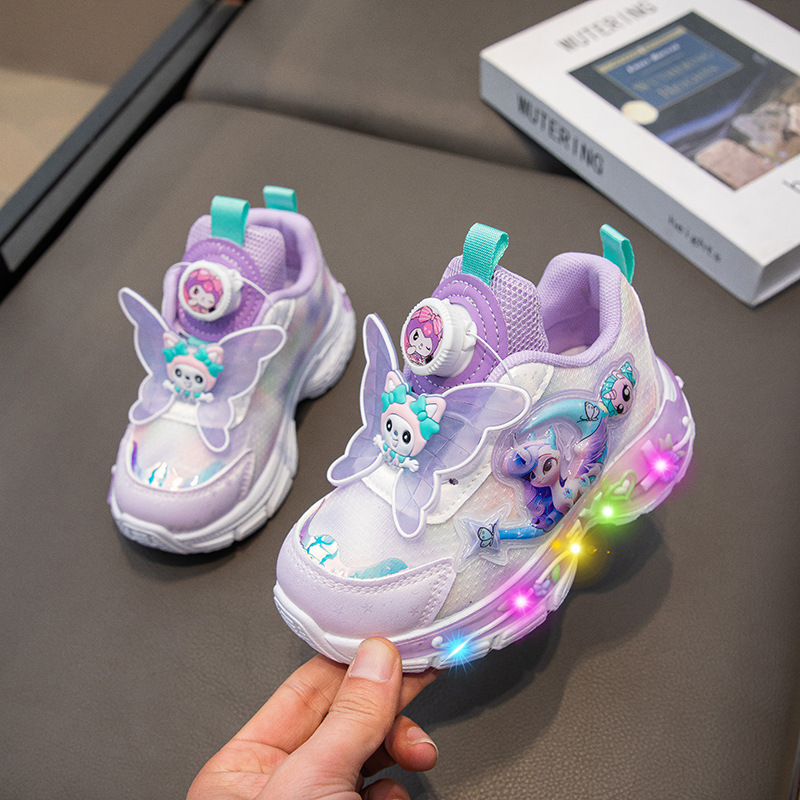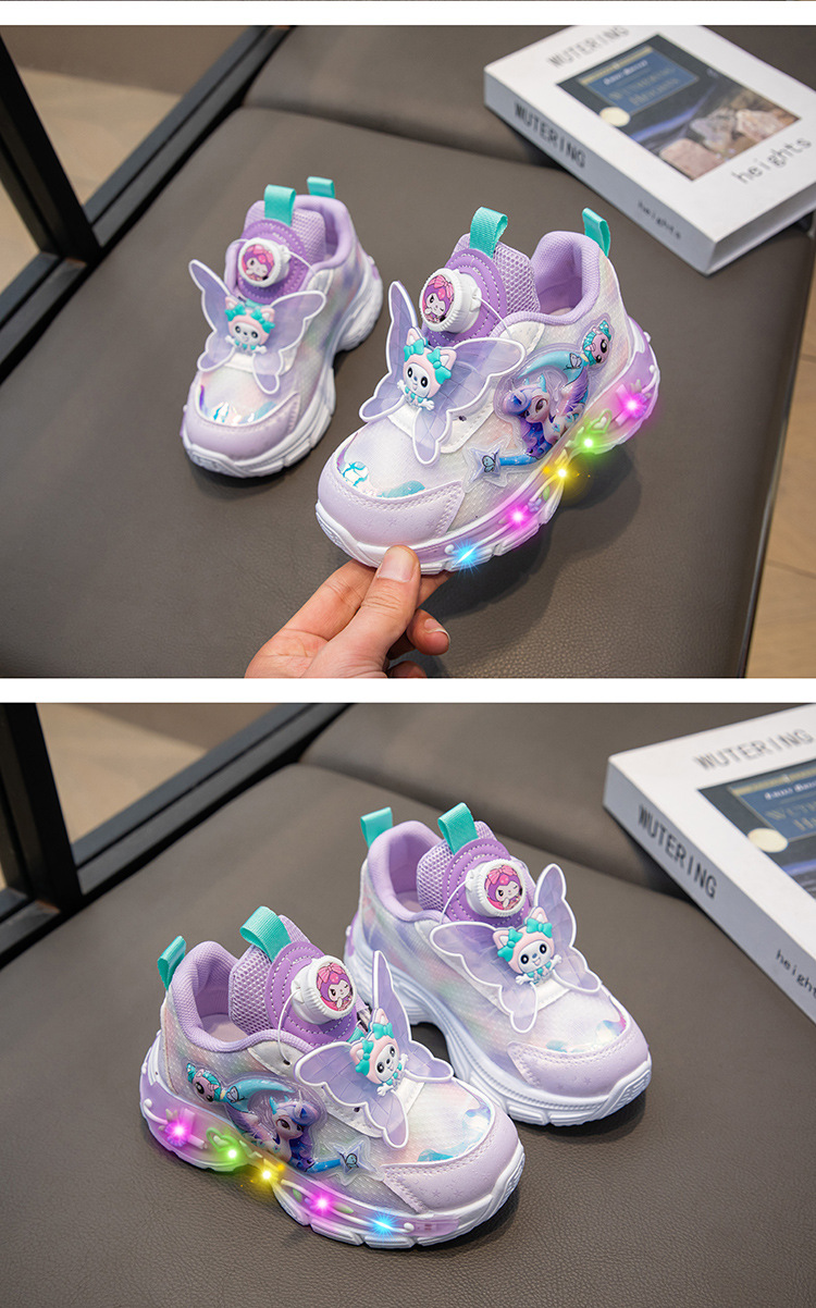 Детская новая мультяшная светящаяся обувь пони Поли светящаяся обувь для девочек кампусная обувь весенняя сетчатая спортивная обувь
