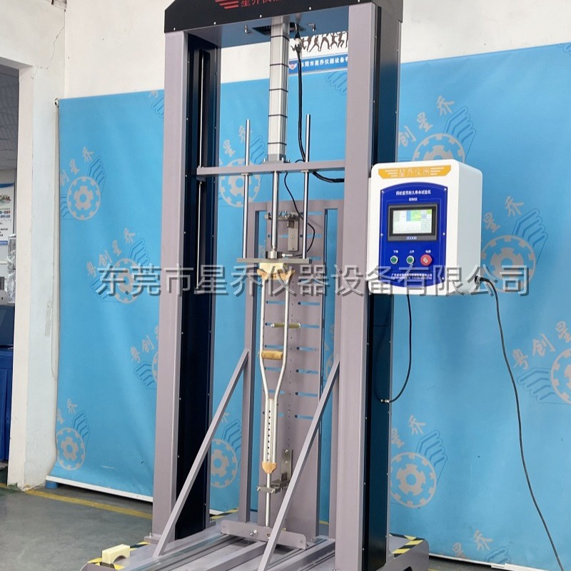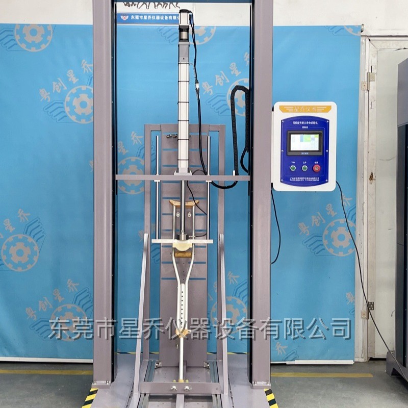 适用于不同类型的带座杖,手杖、肘拐杖,腋杖,多脚拐等,精确模拟实际使用情况对产品力量疲劳测试,静载荷疲劳测试,弯曲测试,能够准确地模拟拐杖在行走、支撑等不同使用场景下的受力疲劳耐久性情况,确保测试结果的可靠性,确保产品符合相关标准和要求,提高产品质量和市场竞争力。