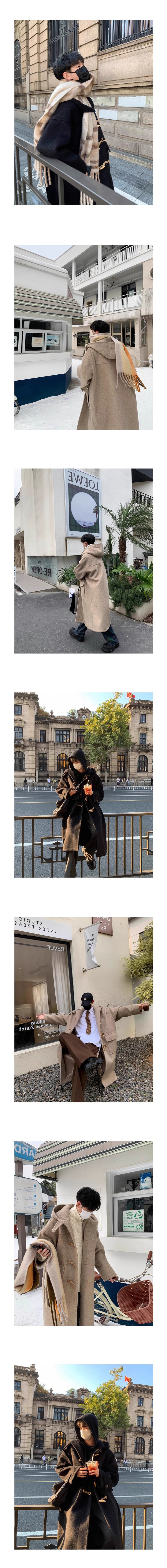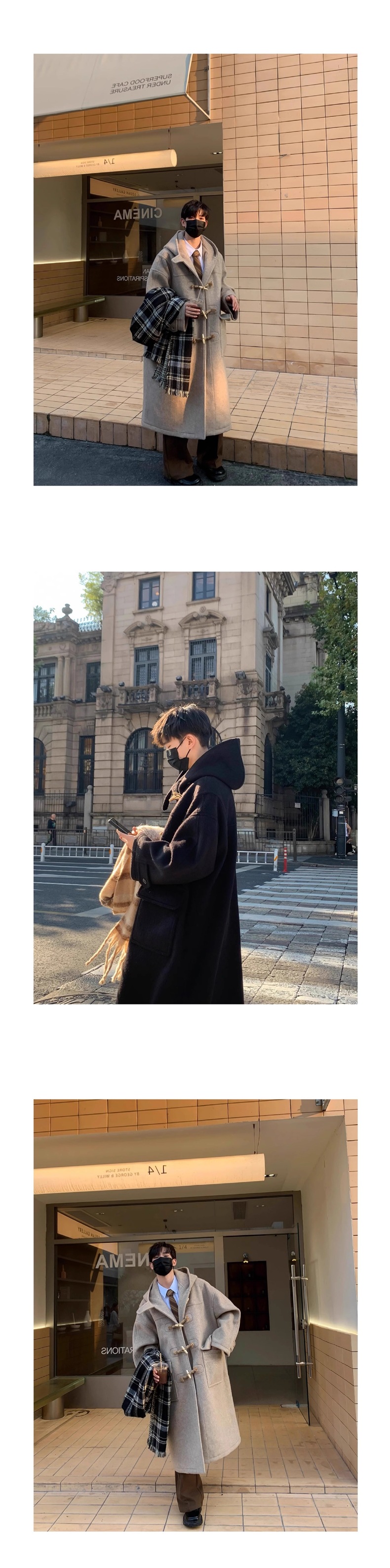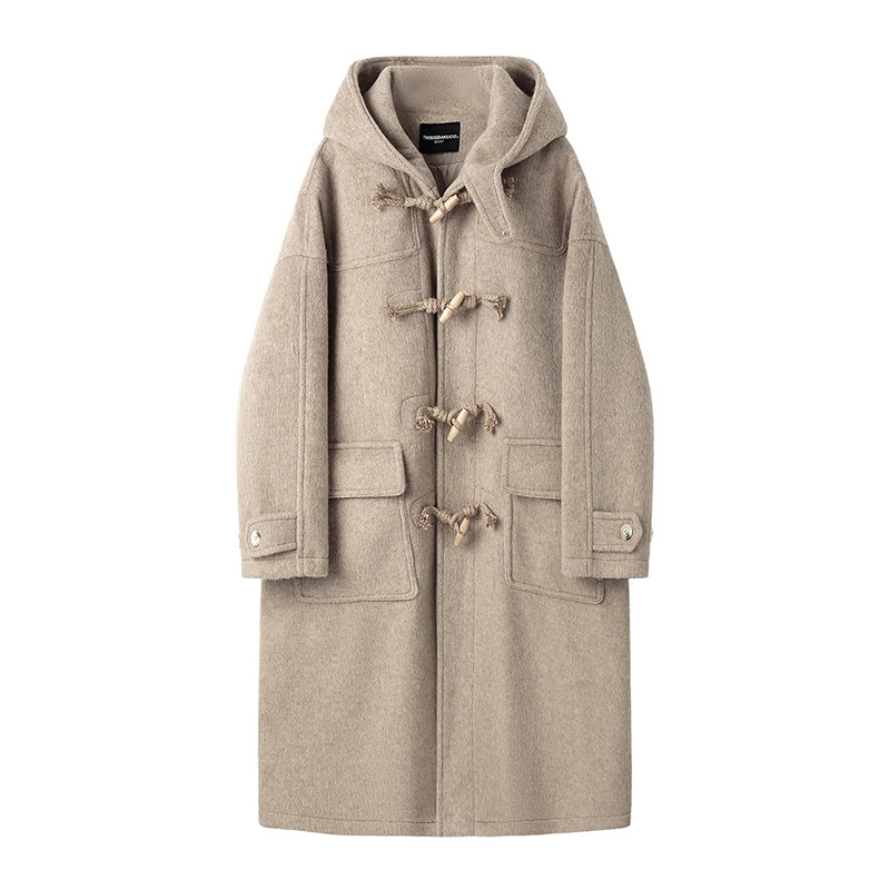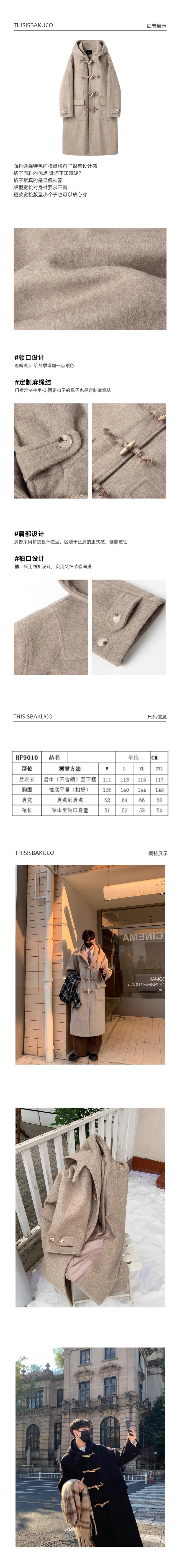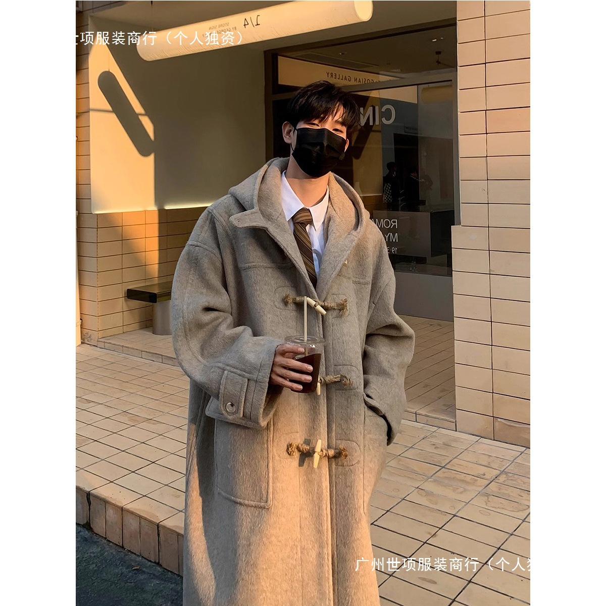 Осенний и зимний рога с капюшоном шерстяное пальто