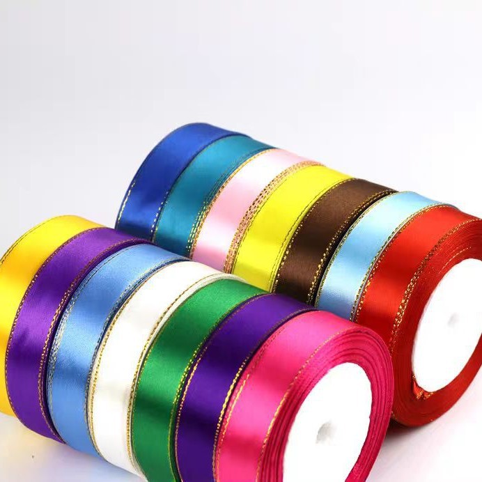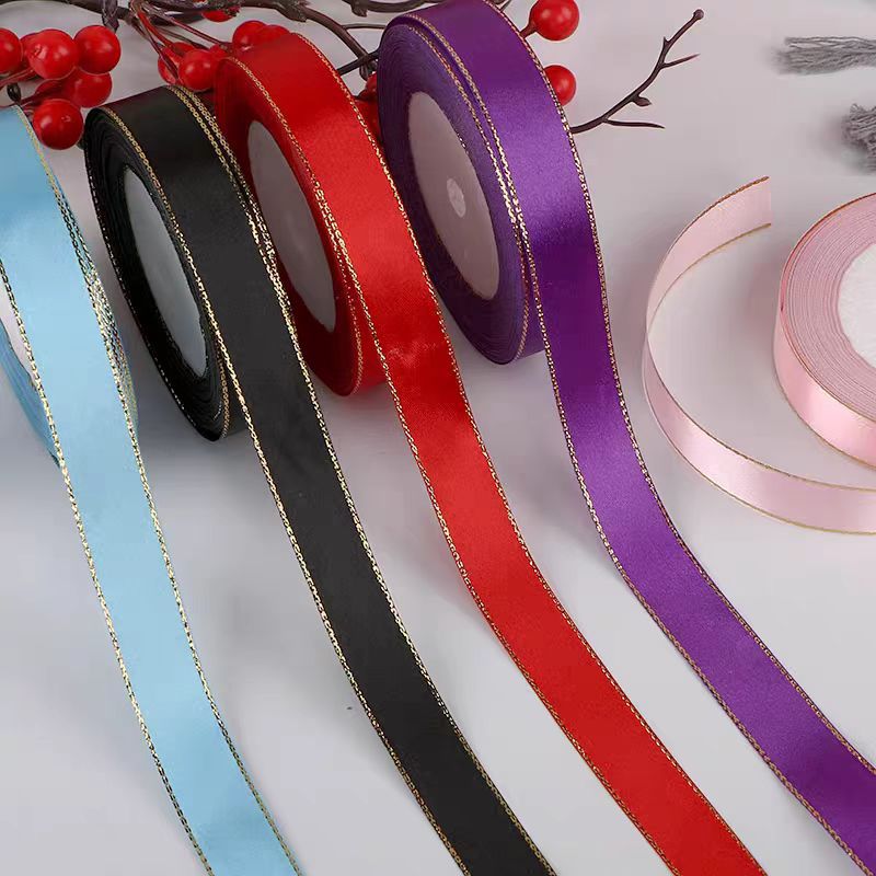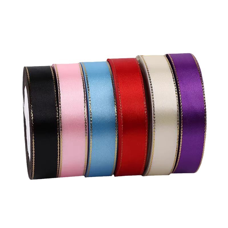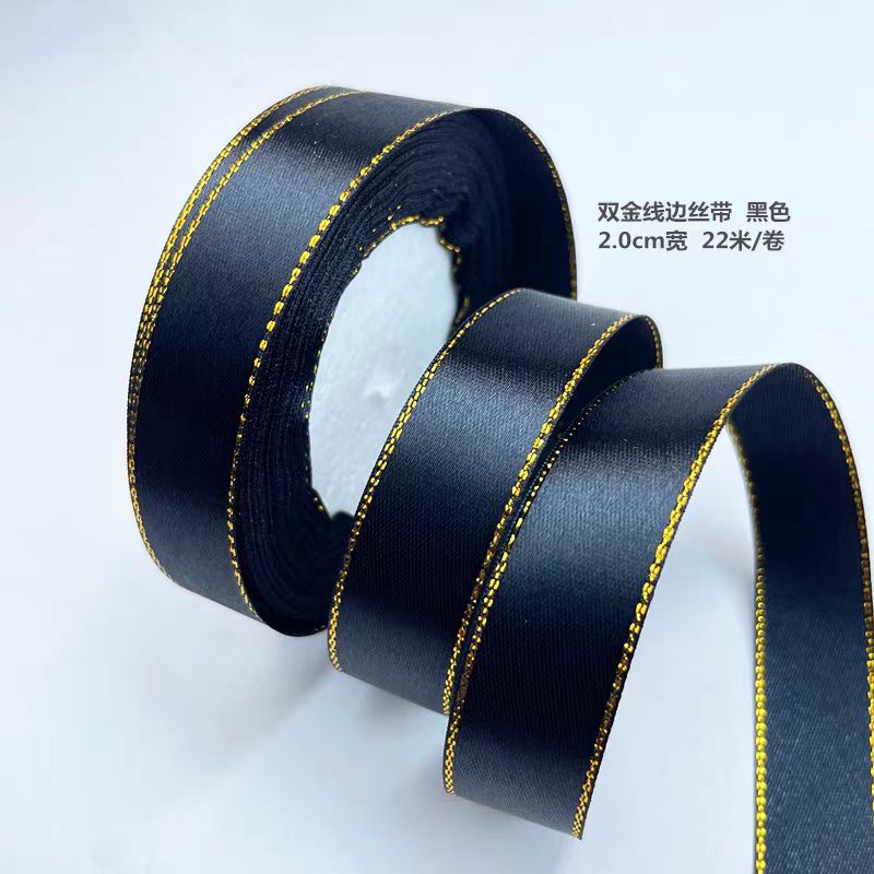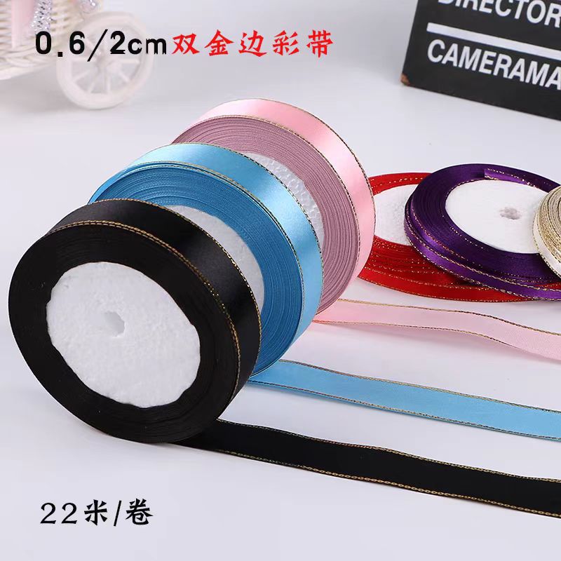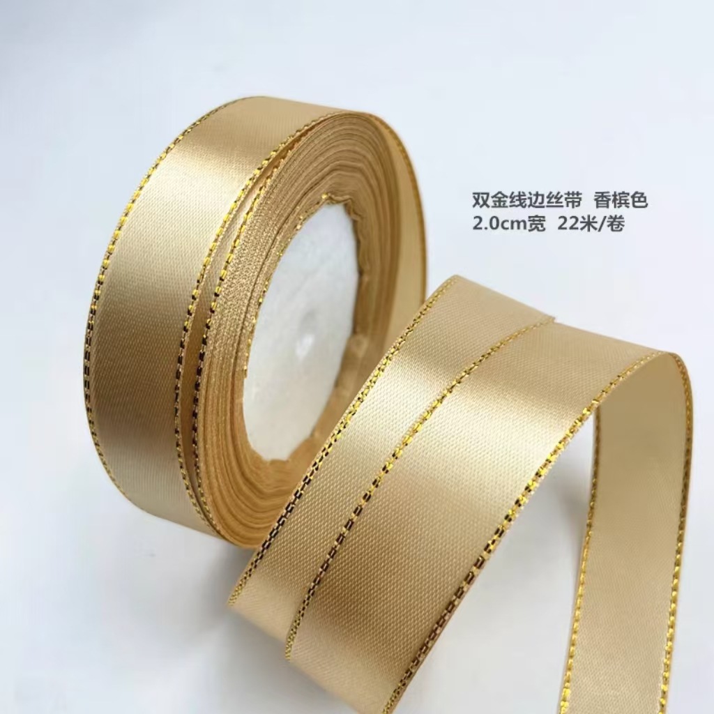 2,0 см двойная золотая лента с лентой 25 ярдов ленты шелковая лента подарочная упаковка с цветочными декоративными лентами DIY ленты ручной работы