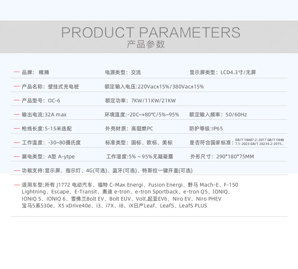 Зарядная станция переменного тока для электромобилей на новой энергии, 7 кВт, подходит для зарядных разъемов BYD, Xiaomi, Li Auto, Changan