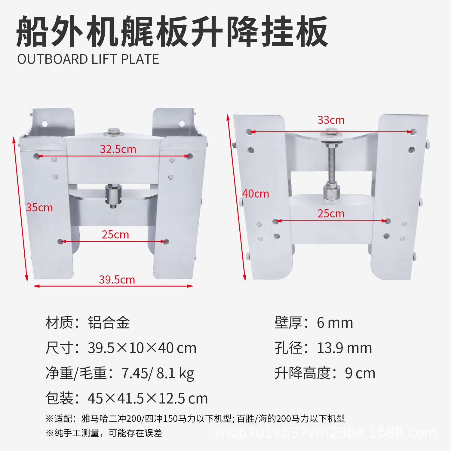 Подъемная доска для мачтового двигателя лодки; Короткая ось подвесного мотора была изменена на подвесную пластину с длинной осью.; Подъемник для крепления подвесного мотора на транец - 60; Гидравлический подъемник для транца подвесного мотора-300; Подъемник гидравлический подвесной для транца-600