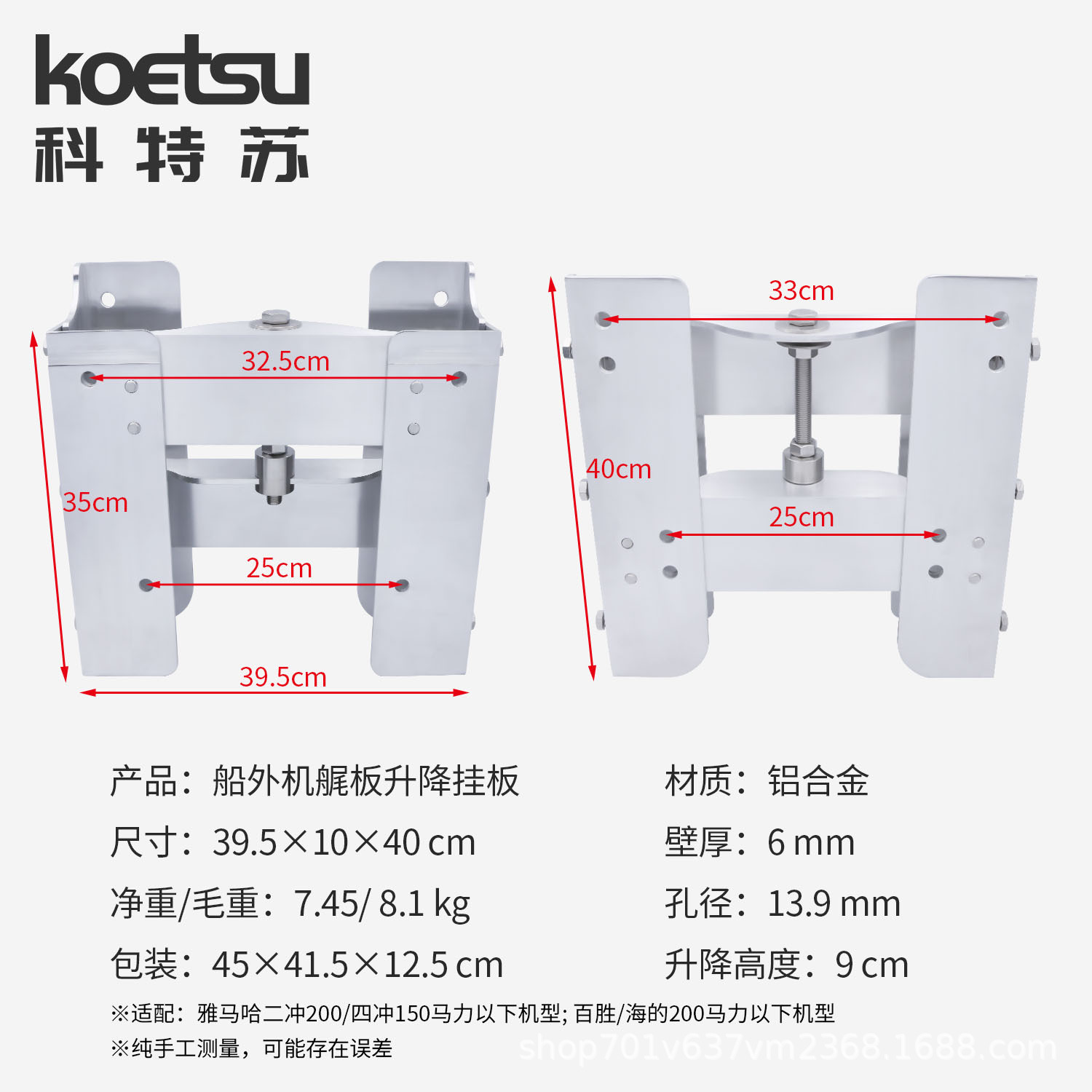 KOETSU Корабль Кортсу Наружная пластина Подвесная пластина Корабль Двигатель Алюминиевый сплав Кронштейн ручной регулировки