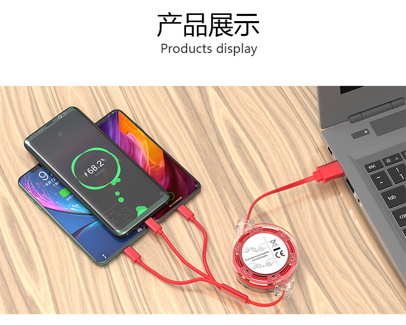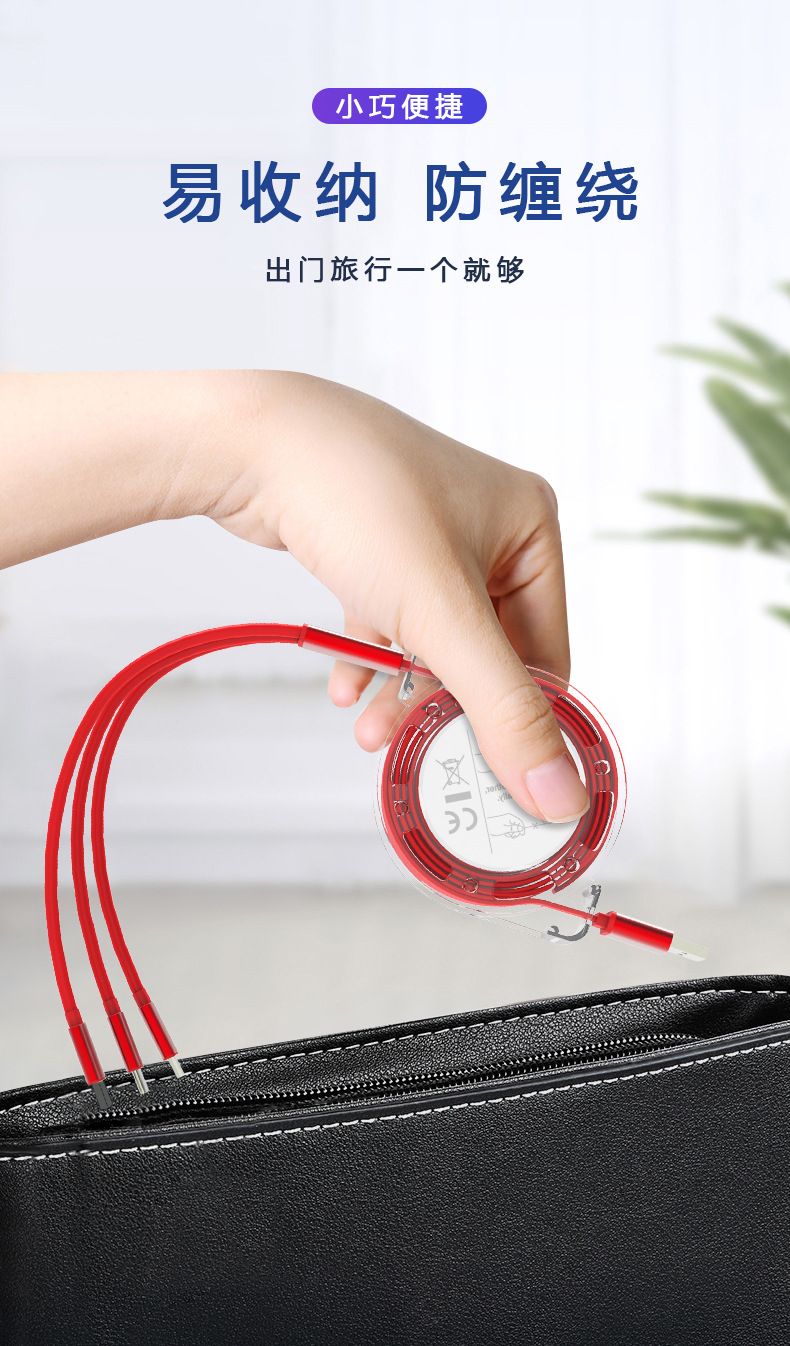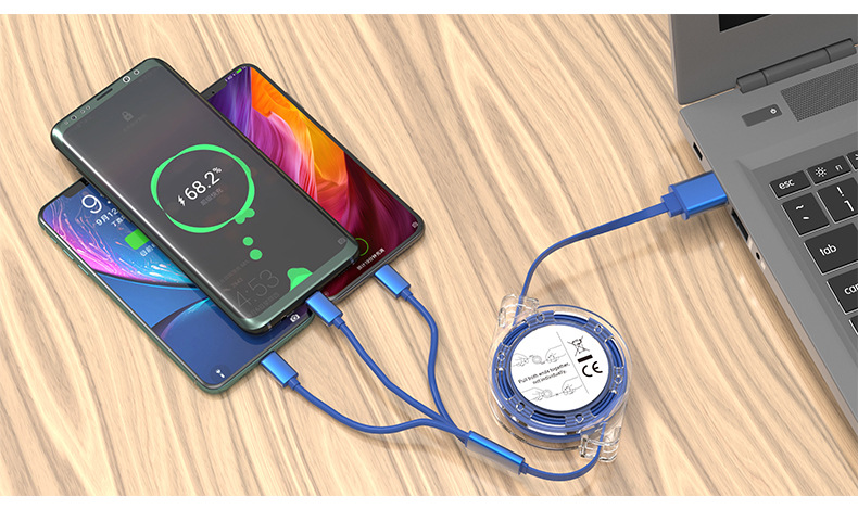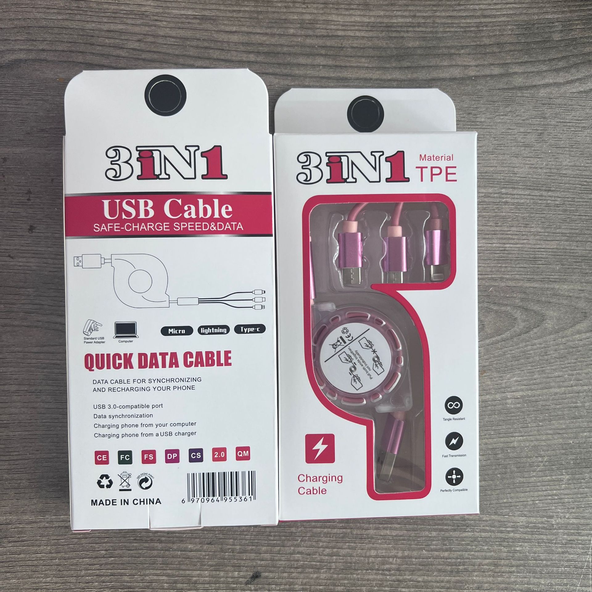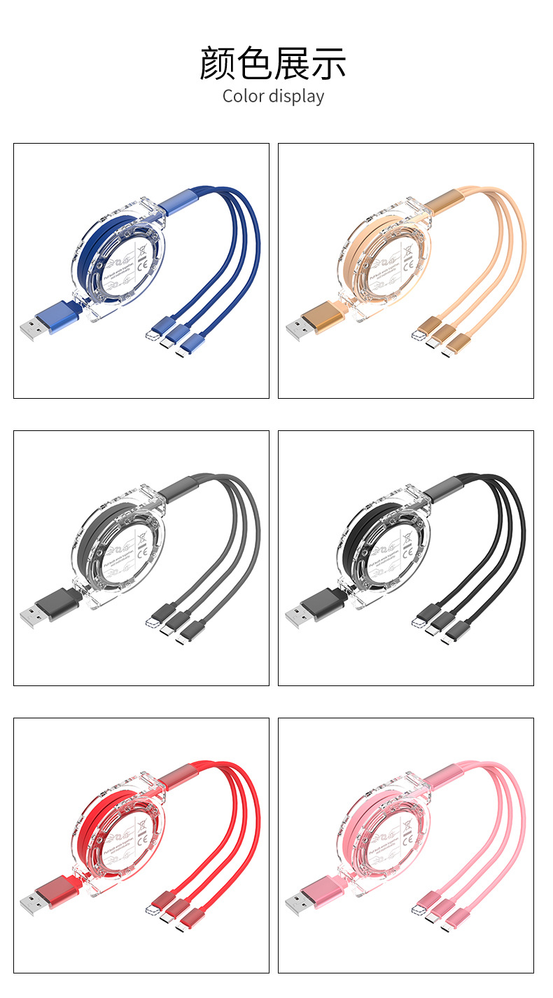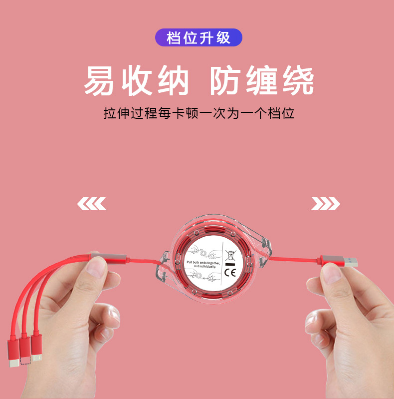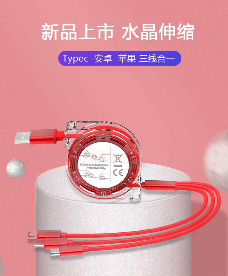 Кристалл телескопический, перетаскивающийся, три кабеля для передачи данных три в одном, быстрая зарядка мобильного телефона