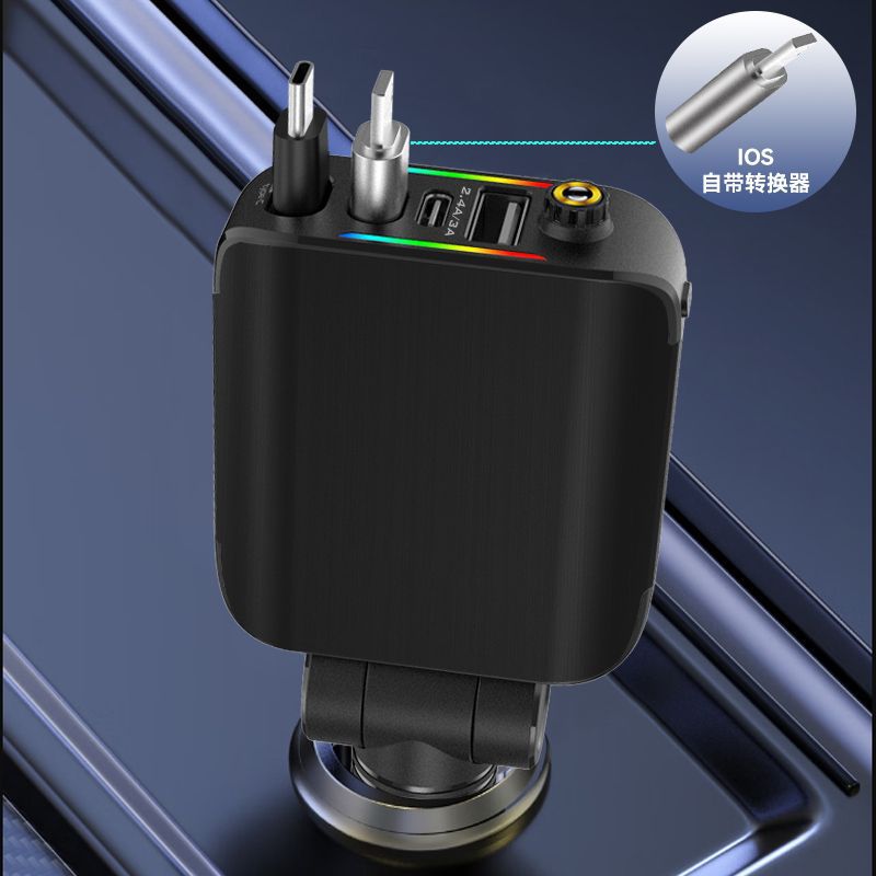Трансграничное автомобильное автомобильное зарядное устройство поддерживает 120W супер быстрая зарядка флэш-зарядная линия телескопическая световая световая прикуриватель