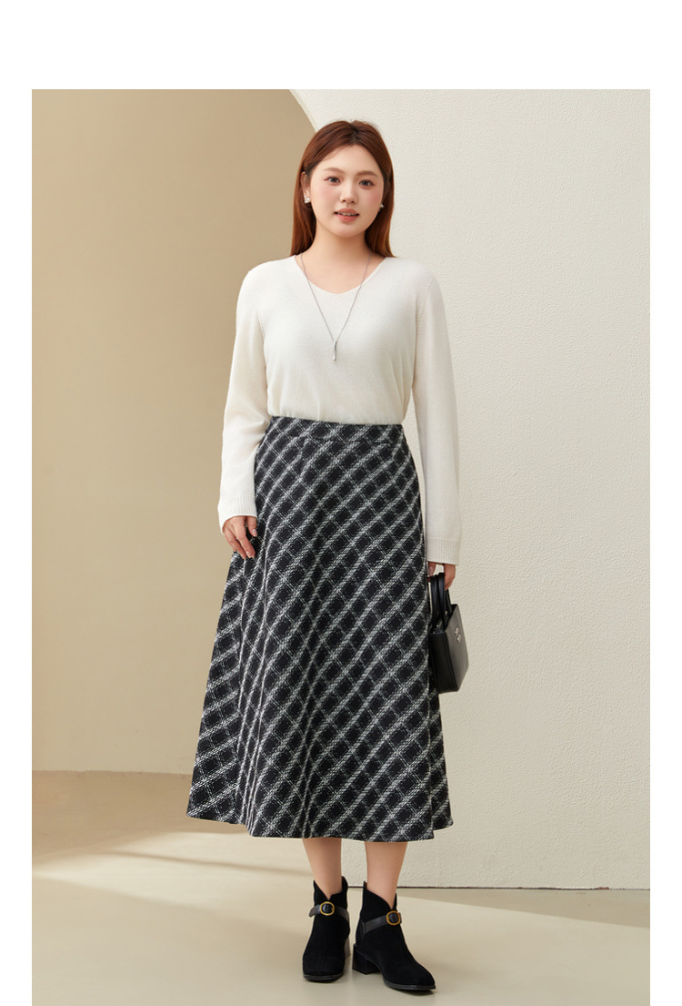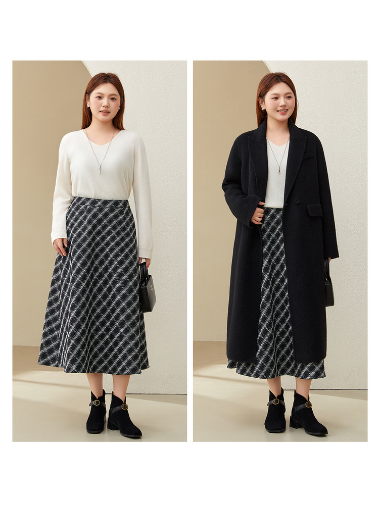 [Lycell, овечья шерсть, юбка Грея] Полосатый большой размер женский толстый mm2024 зимний новый