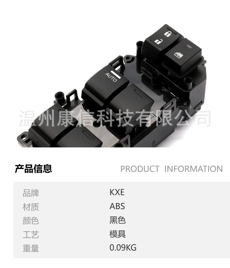 浙江康信电器集团有限公司专业生产汽车玻璃升降开关、连接器、线束、中控锁.做为国内的汽车零部件供应商,康信电器秉承“顾客至上,锐意进取”的经营理念,追随国际汽车的发展潮流,将世界汽车电子的最新科研成果融汇于公司内的产品开发与生产,并以向海内外各大汽车厂商提供优质的汽车电子产品为企业的荣耀