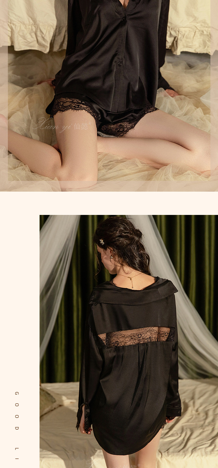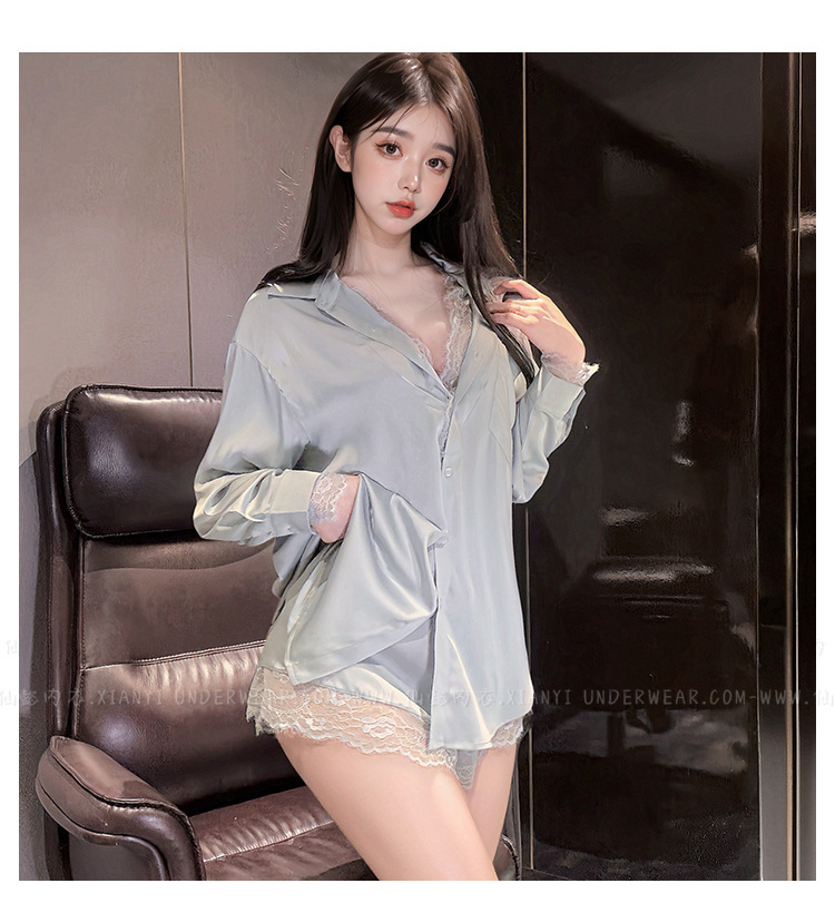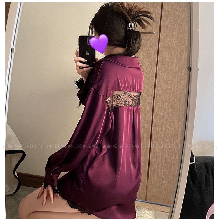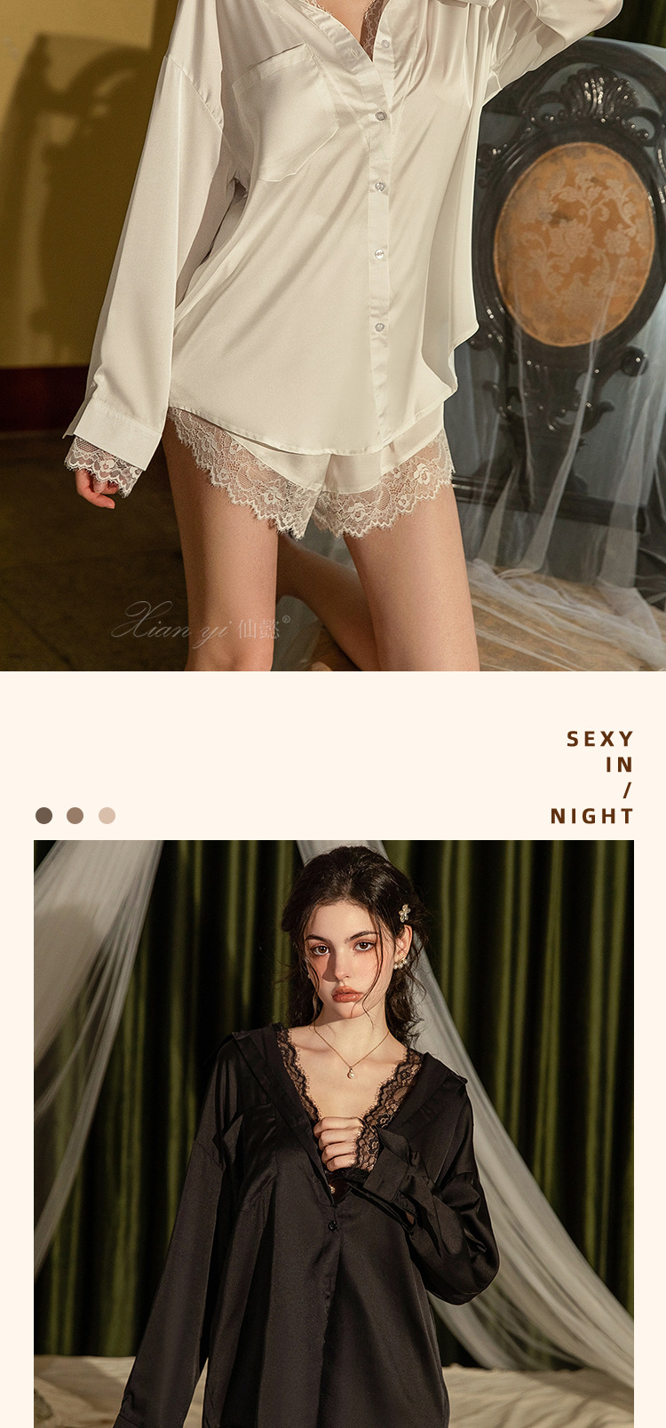 Сянь Сексуальная пижама Женская кружева с длинными рукавами