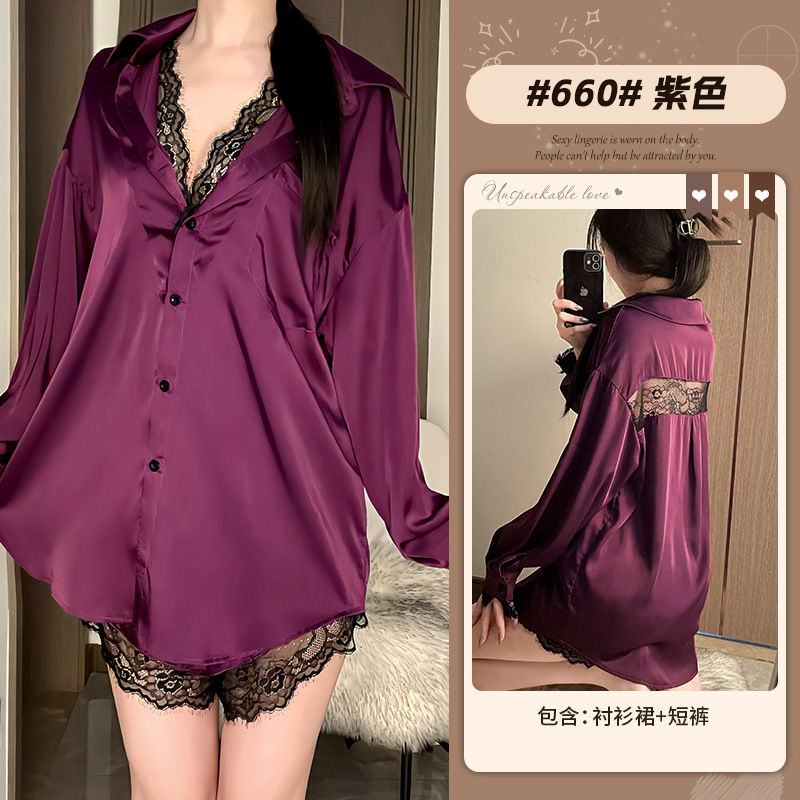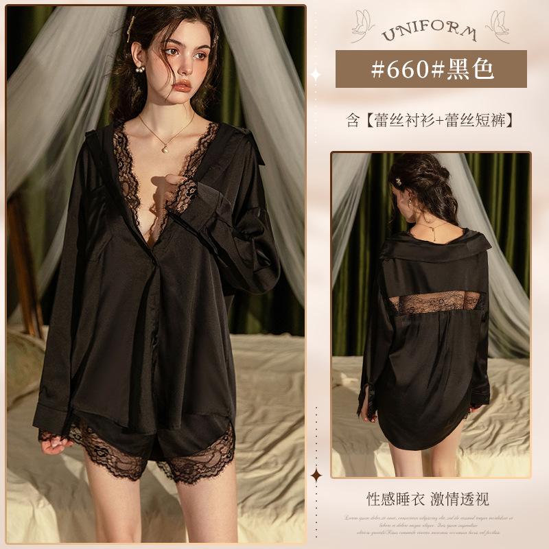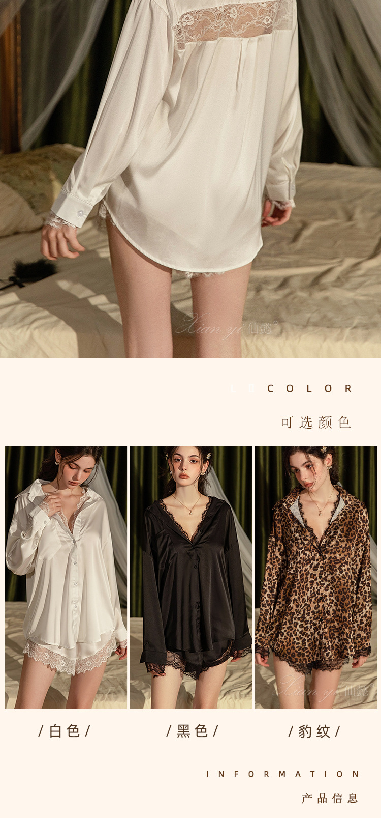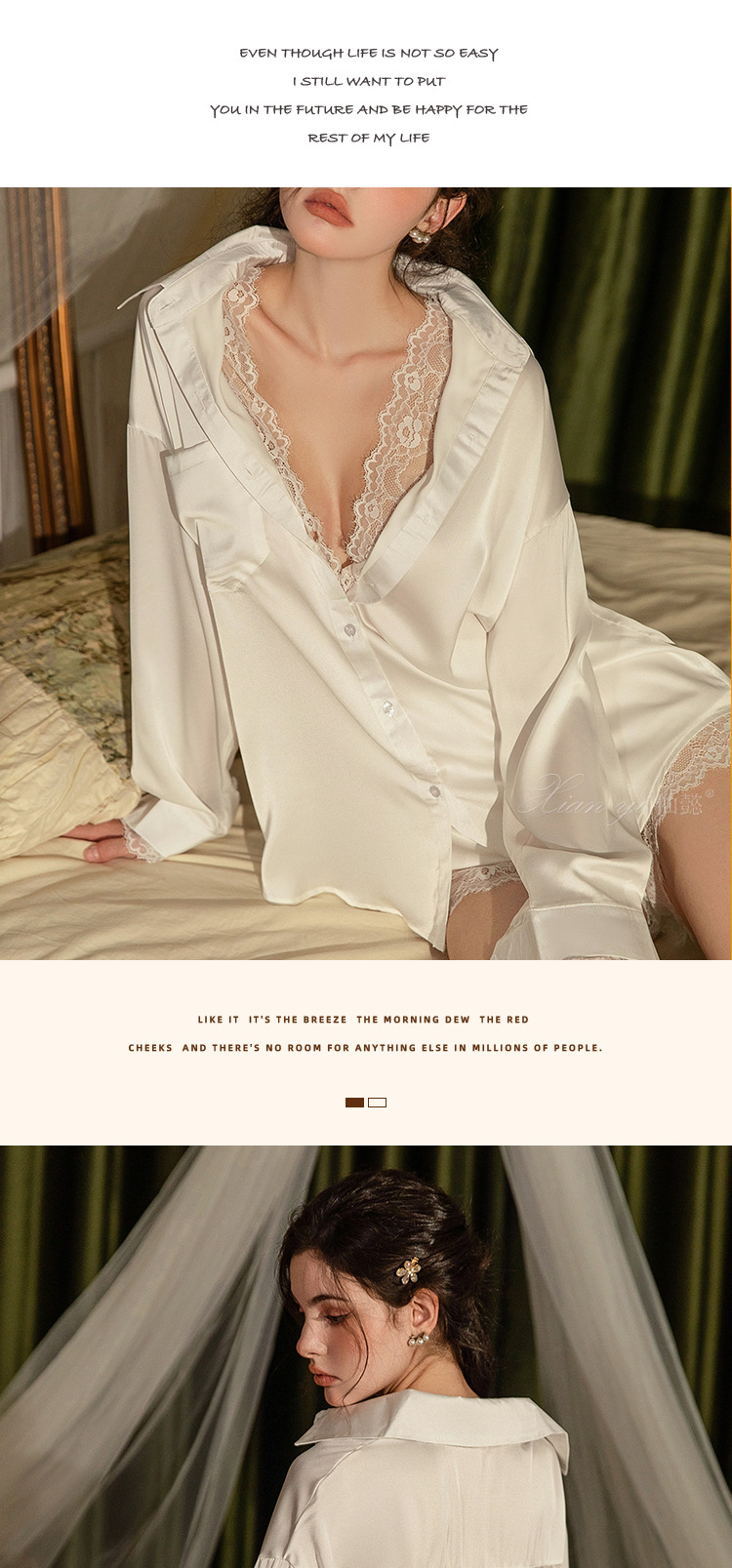 Сянь Сексуальная пижама Женская кружева с длинными рукавами