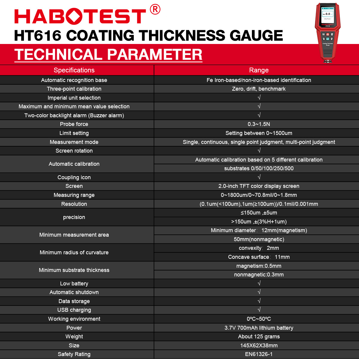 HABOTEST Заводской магазин HT616 Толщеометр новый автомобильный детектор краски краски Измеритель пленки краски