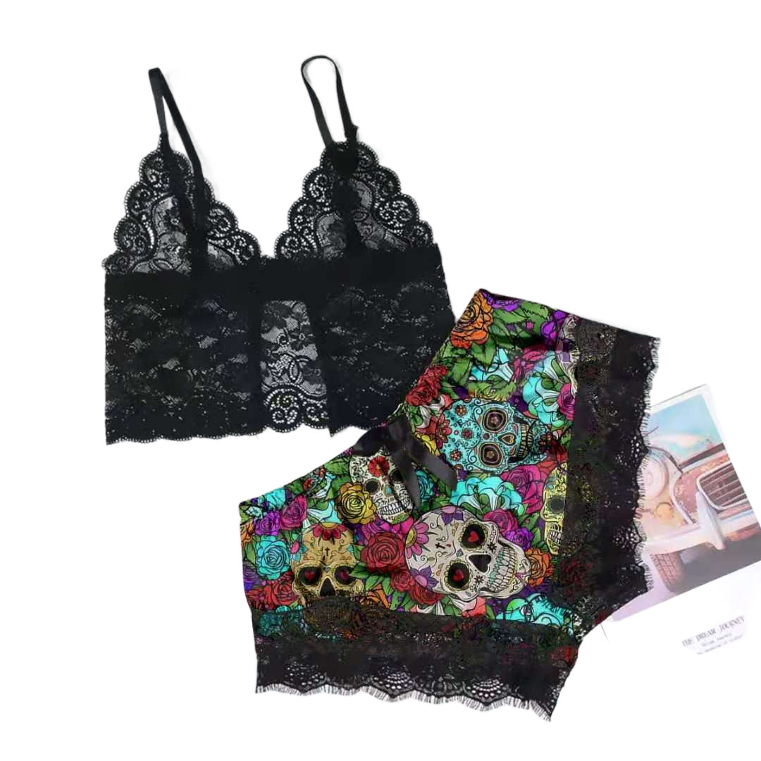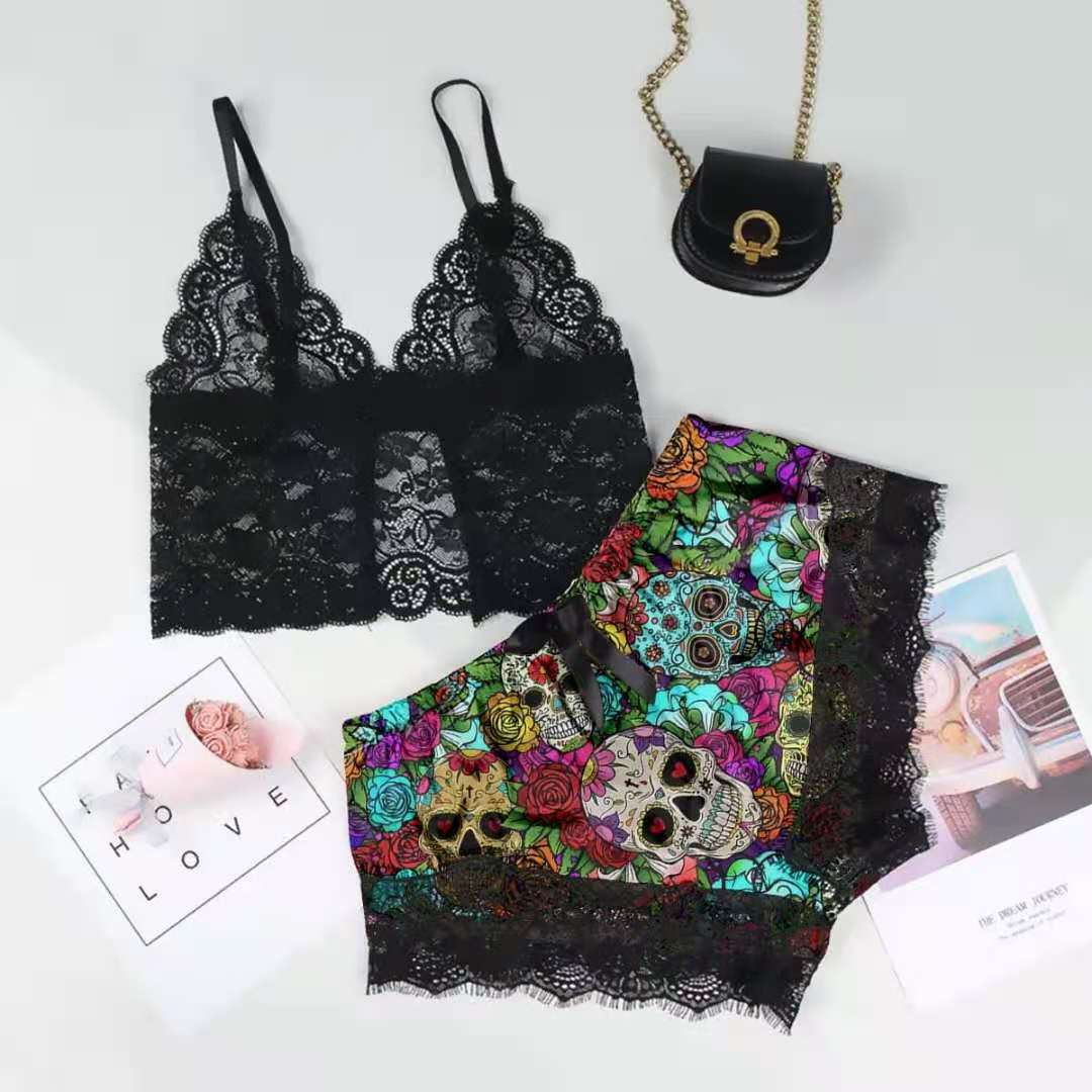 Эротическое белье европейское и американское взрывное сексуальное кружевное цветное принт с черепом кружевные шорты для женщин