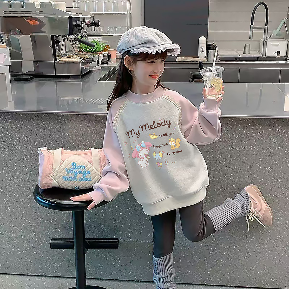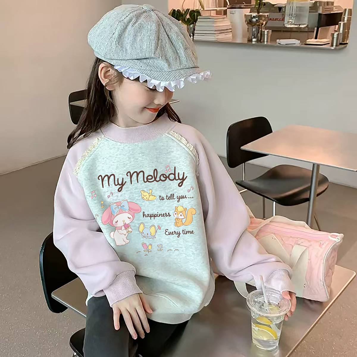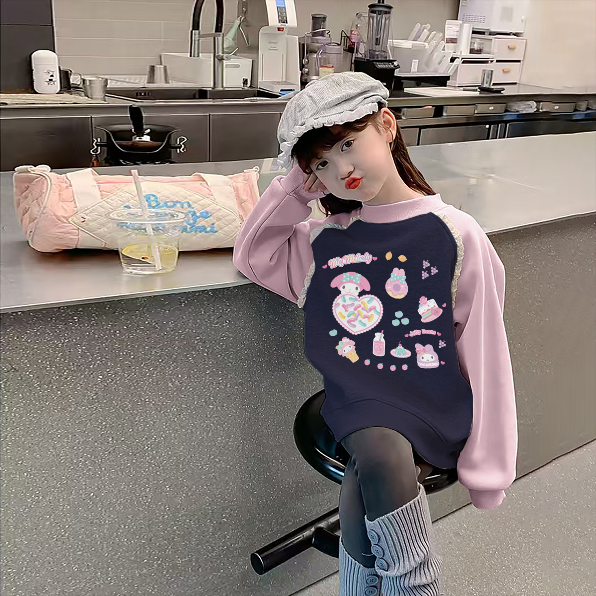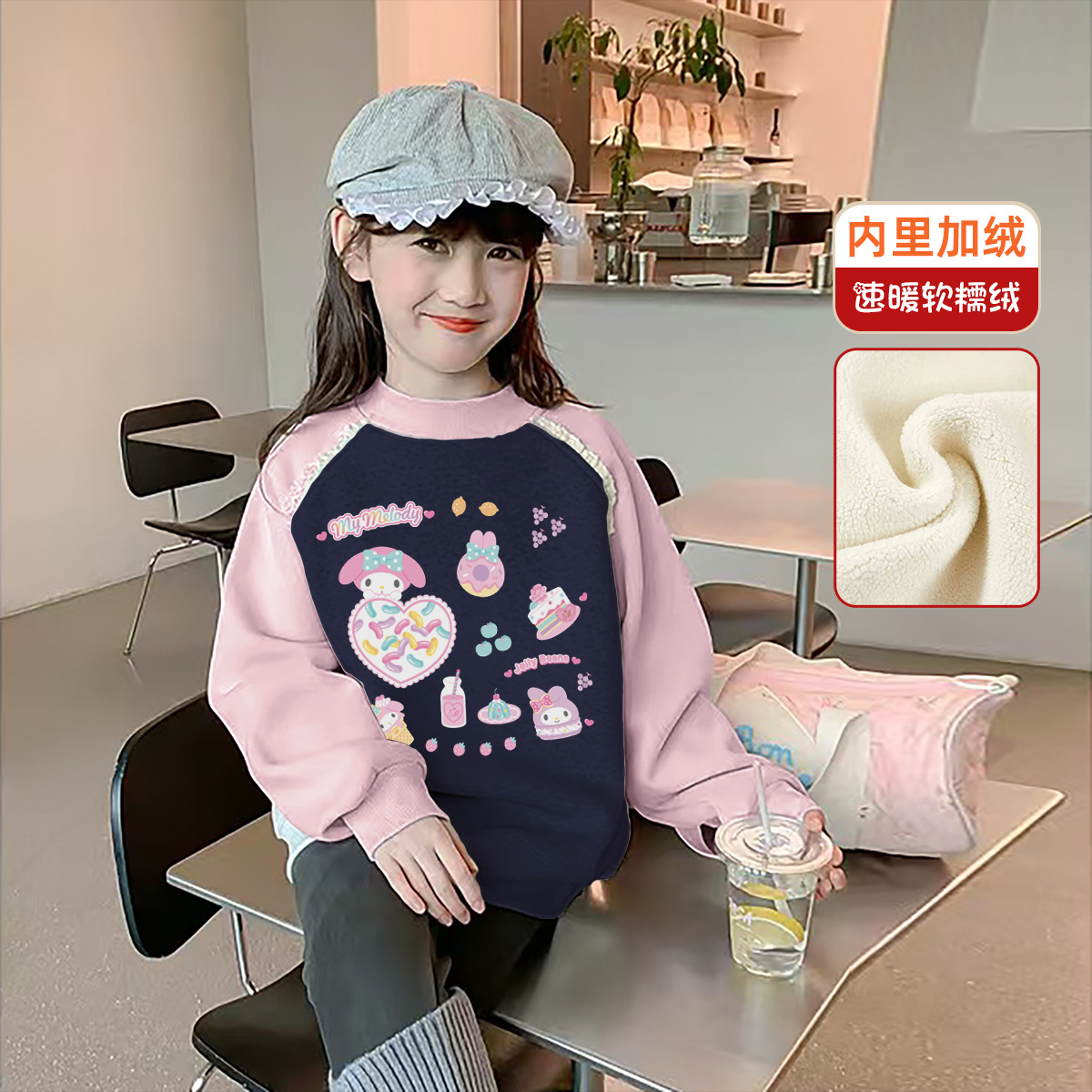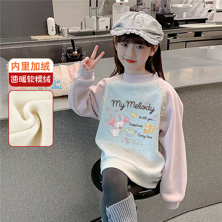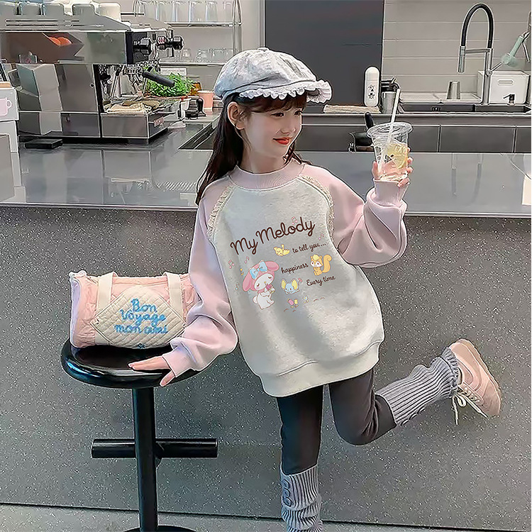 Девочки осенью и зимой с бархатным свитвором 2024 новая детская одежда Meltty IP-пуловера свитера