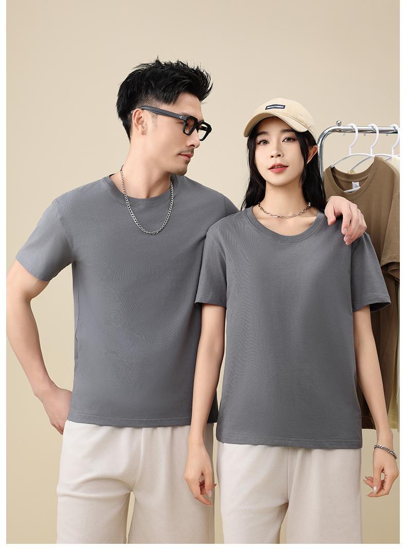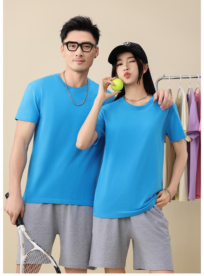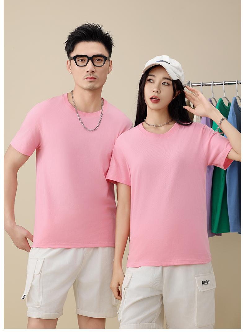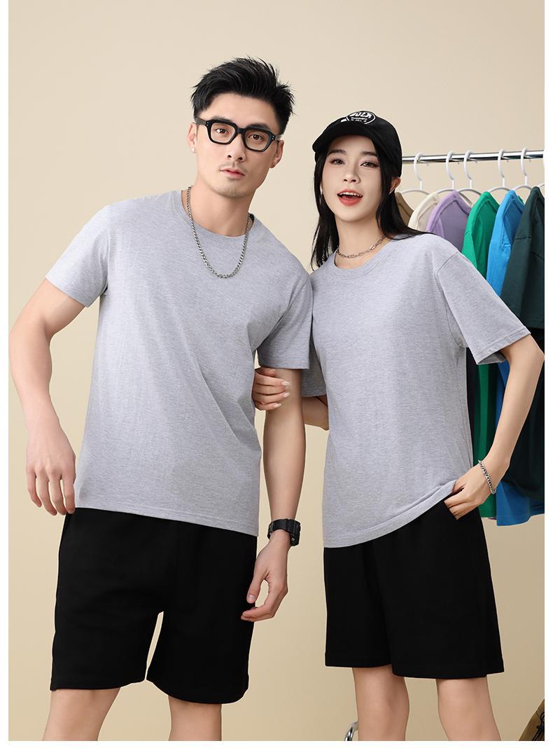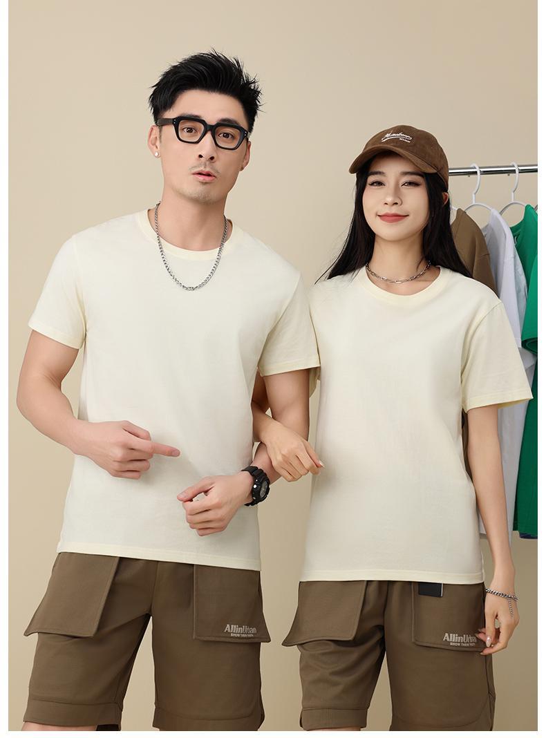 Летняя тяжелая 210 г хлопчатобумажная футболка с коротким рукавом с круглым вырезом на заказ с логотипом свободного сплошного цвета мужской и женской групповой одежды оптом