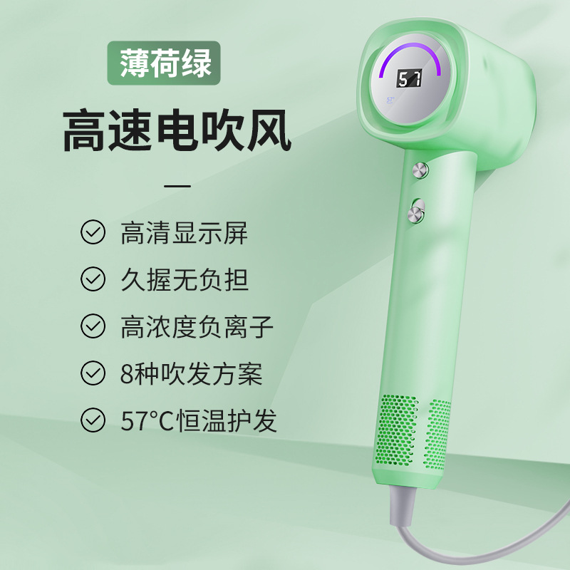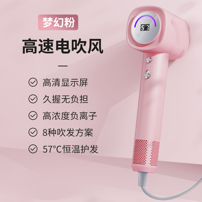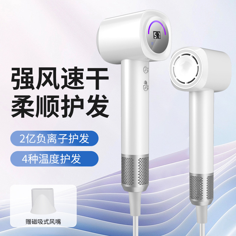 4档风温、2档风速、高负离子浓度、过热保护、高速无刷电机、磁吸式风嘴、风温数显屏、多种适配器(中规 美规 英规 欧规)