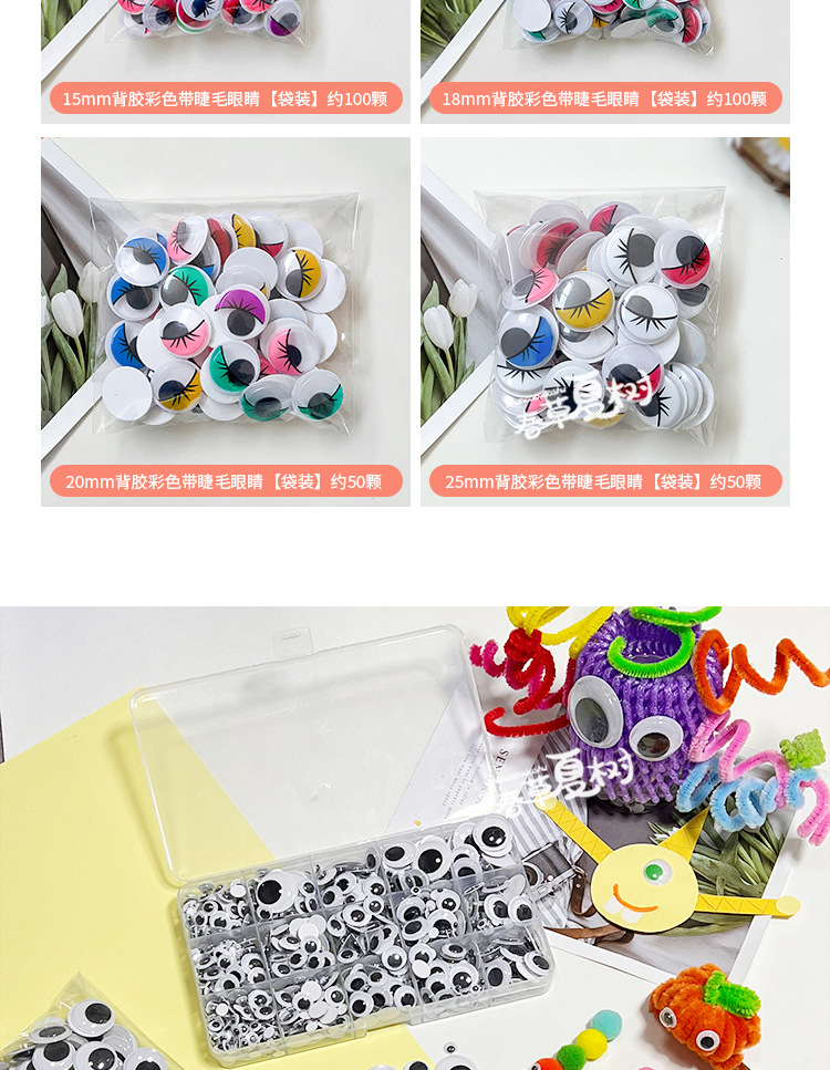 Черно-белый цвет, большие и маленькие смешанные глаза [в коробке] около 700 штук.; 7-цветные подвижные глазные яблоки разных размеров [в упаковке] около 600 штук.; Черно-белые смешанные глаза размером 4~18 мм [в упаковке] около 800 штук; Черно-белые смешанные глаза размером 6–20 мм [в упаковке] около 1280 штук.; Черно-белые смешанные глаза размером 4–25 мм [в упаковке] около 1000 штук; Черно-белые смешанные глаза размером 4~18 мм [в бутылках], около 300 штук.; Черно-белые смешанные глаза размером 4–20 мм [в бутылках], около 400 штук.; 5 ~ 15 мм цветные глаза на клейкой основе разных размеров [в бутылках], около 300 шт.; Цветная основа 8 ~ 15 мм, черные бусины, глаза разных размеров [в бутылках], около 200 шт.; 6 ~ 20 мм цветные ресницы и глаза разных размеров [в бутылках], около 200 шт.; [Горячая модель для детского сада] Черно-белый размер 4–20 мм, около 2100 штук.; [Горячая модель для детского сада] Разноцветные глаза размером 5–15 мм, около 1500 штук.; [Горячая модель для детского сада] Цветной фон с черными бусинами размером 8 ~ 15 мм, смешанная упаковка около 1000 штук.; [Горячая модель для детского сада] Цветные ресницы размером 6–25 мм, около 1000 штук; Черно-белые глаза диаметром 4 мм с клейкой основой [пакет] 500 шт.; Черно-белые глаза диаметром 5 мм с клейкой основой [пакет] 400 шт.; Черно-белые глаза 6 мм с клейкой основой [пакет] 300 шт.; Черно-белые глаза 8 мм с клейкой основой [пакет] 200 шт.; Черно-белые глаза 10 мм с клейкой основой [пакет] 200 шт.; Черно-белые глаза 12 мм с клейкой основой [пакет] 150 шт.; Черно-белые глаза диаметром 15 мм с клейкой основой [пакет] 150 шт.; Черно-белые глаза 18 мм с клейкой основой [пакет] 100 шт.; Черно-белые глаза шириной 20 мм с клейкой основой [пакет] 100 шт.; Черно-белые глаза шириной 25 мм с клейкой основой [пакет] 50 шт.; Черно-белые глаза шириной 30 мм с клейкой основой [пакет] 50 шт.; Черно-белые глаза диаметром 35 мм с клейкой основой [пакет] 30 шт.; Красочные глаза диаметром 5 мм с клейкой основой [пакет] 300 шт.; Красочные глаза диаметром 6 мм с клейкой основой [пакет] 300 шт.; Красочные глаза 7 мм с клейкой основой [пакет] 300 шт.; Цветные глаза 8 мм с клейкой основой [пакет] 300 шт.; Цветные глаза 10 мм с клейкой основой [пакет] 200 шт.; Цветные глаза 12 мм с клейкой основой [пакет] 200 шт.; Цветные глаза 15 мм с клейкой основой [пакет] 200 шт.; 8 мм глазки из черных бусин на клейкой основе с цветным фоном [пакет] 300 шт.; 10 мм глазки из черных бусин на клейкой основе с цветным фоном [пакет] 300 шт.; Черные бусины на клейкой основе 12 мм с цветным фоном [пакет] 200 шт.; 15 мм глазки из черных бусин на клейкой основе с цветным фоном [пакет] 150 шт.; 6мм клейкий цвет с глазами для ресниц [пакет] 200 шт.; 8мм клейкий цвет с глазами для ресниц [пакет] 200 шт.; Клейкий цвет 10мм с глазами для ресниц [пакет] 200 шт.; Клейкий цвет 12мм с глазами для ресниц [пакет] 200 шт.; 15мм клейкий цвет с ресницами и глазами [пакет] 100шт.; Клейкий цвет 18 мм с глазами для ресниц [пакет] 100 шт.; 20мм клейкий цвет с глазами для ресниц [пакет] 50шт.; 25мм клейкий цвет с глазами для ресниц [пакет] 50шт.; 10 резервуаров для хранения 55*80 мм.; 5 резервуаров для хранения 85*85 мм.; 5 ящиков для хранения цветов сливы с 7 отделениями.; 1 ящик для хранения с 15 отделениями