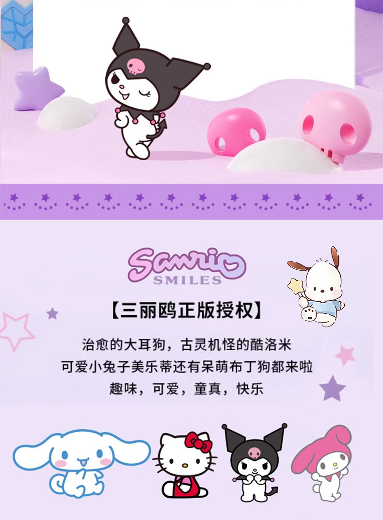 Фиолетовый Куломи; Мелодия Мелодия; небесно-голубая большевушая собака; розовая hello kitty; Коричневая собака Пача