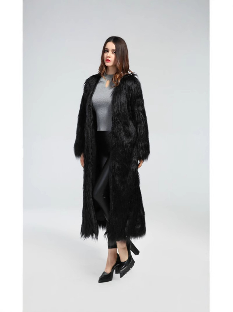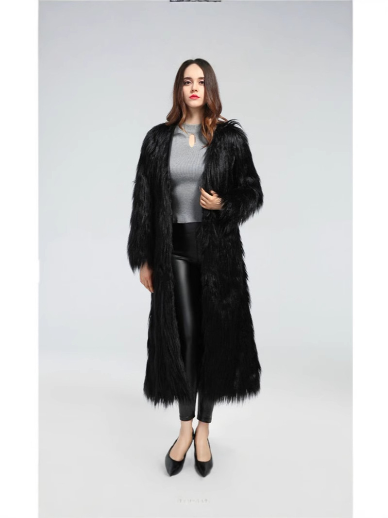 Трансграничная 2025 новая супер длинная королева фана пляжная шерстяная куртка пальто из искусственного меха сексуальная ветровка