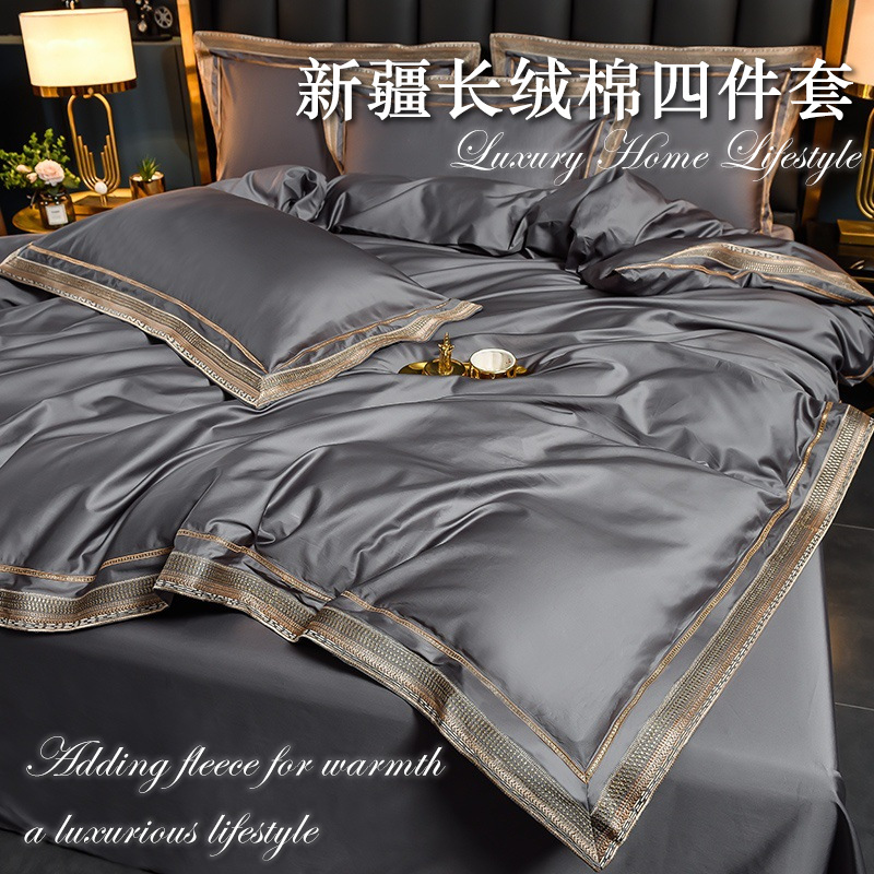 Комплект постельного белья из длинноволокнистого хлопка Синьцзянь, четыре предмета, легкий люкс и высокое качество, простыня и пододеяльник из чистого хлопка для дома и студентов, полностью хлопковое постельное белье.