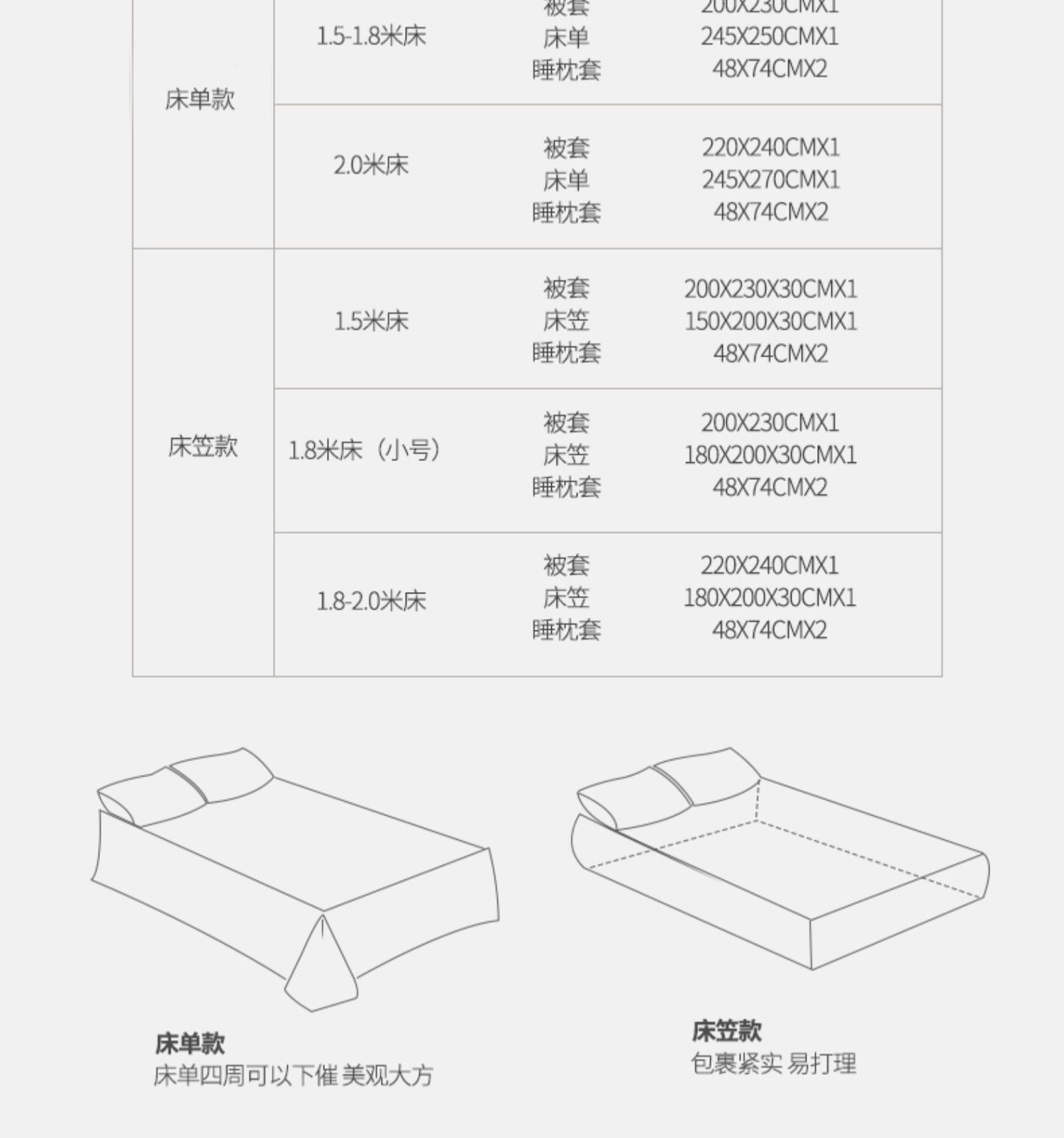Кровать 1,2 м/1,35 м [набор простыней из трех предметов]; Кровать 1,5 м [набор простыней из четырех]; Кровать 1,8 м [набор простыней из четырех]; Кровать 2,0 м [набор простыней из четырех]; Кровать 1,5 м [набор простыней из четырех]; Кровать 1,8 м [набор простыней из четырех]; Кровать 2,0 м [набор простыней из четырех]