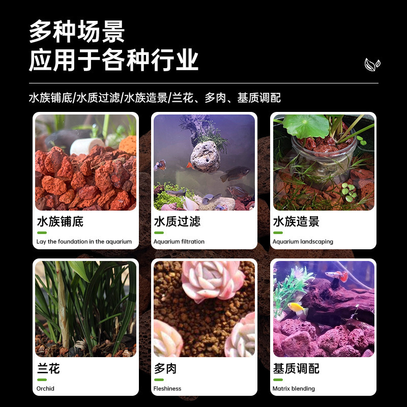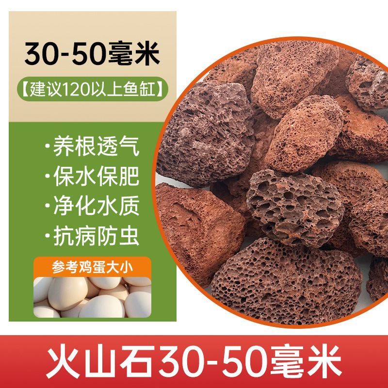 Вулканический камень 6-10 мм [рекомендуемые аквариумы ниже 60]; Вулканический камень 10-30 мм [рекомендуется аквариум 80-100]; Вулканический камень 30-50 мм [рекомендуемые аквариумы выше 120]