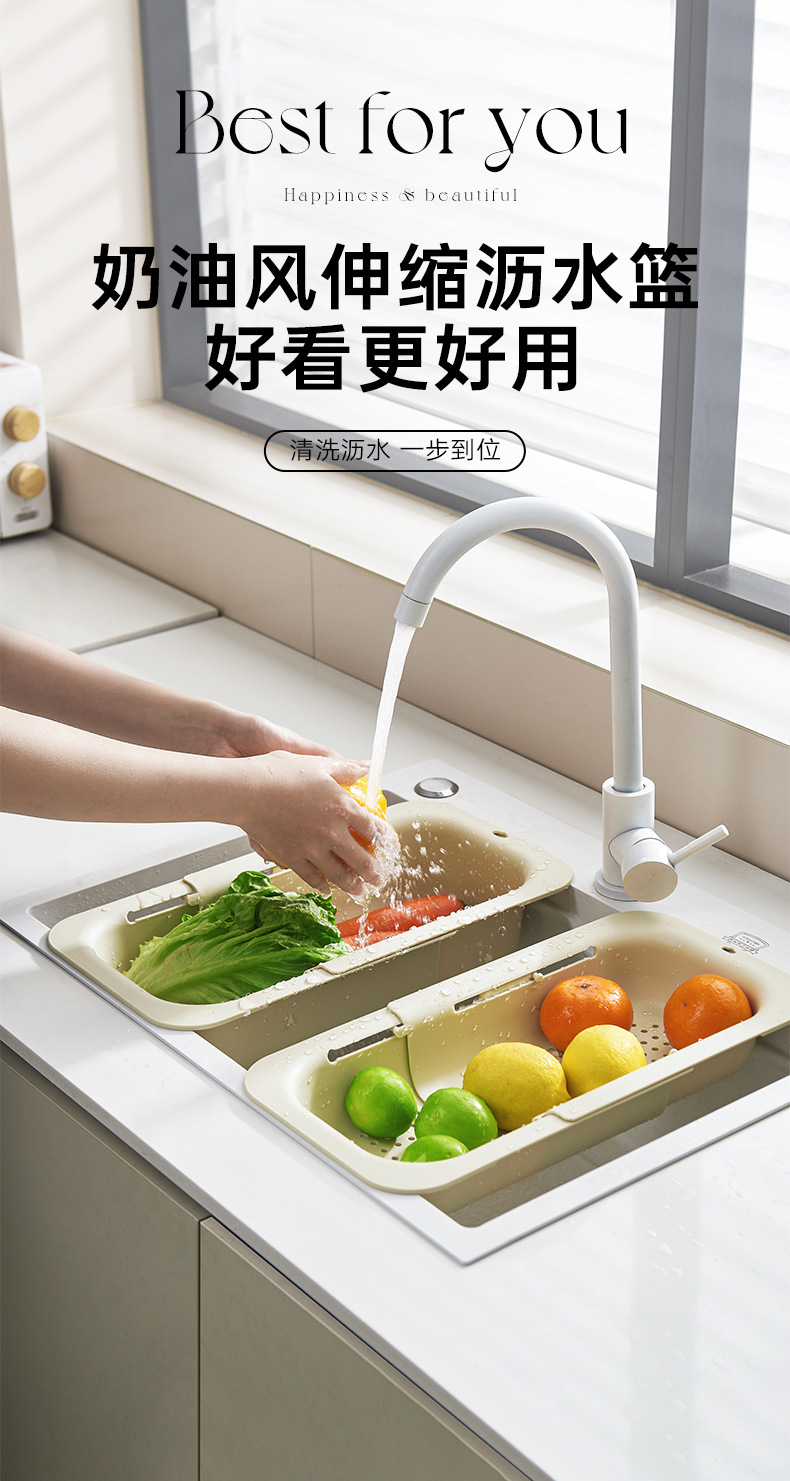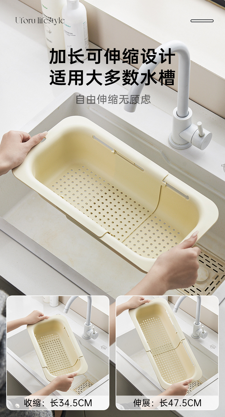 Раздвижная корзина для слива воды для кухонной мойки, многофункциональный органайзер большой вместимости для хранения посуды и приборов.