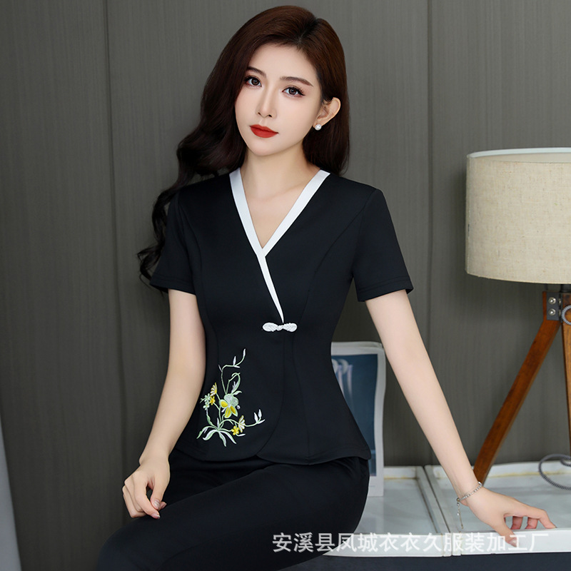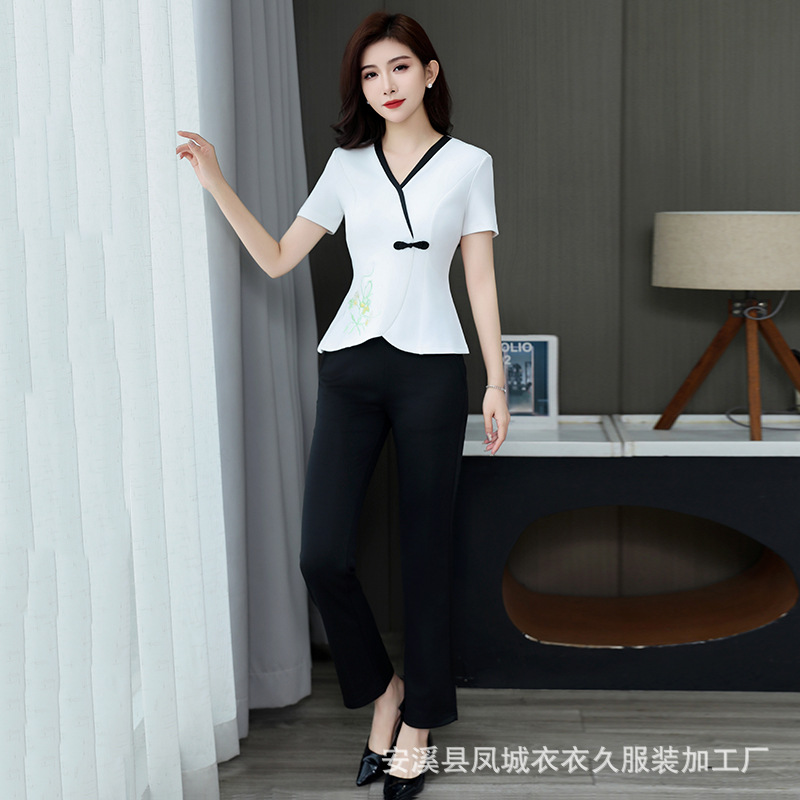 Новый женский деловой костюм в китайском стиле, вышитый блейзер, униформа для работы на ресепшн, в отеле, модель 3027-2