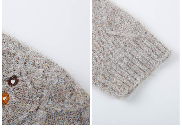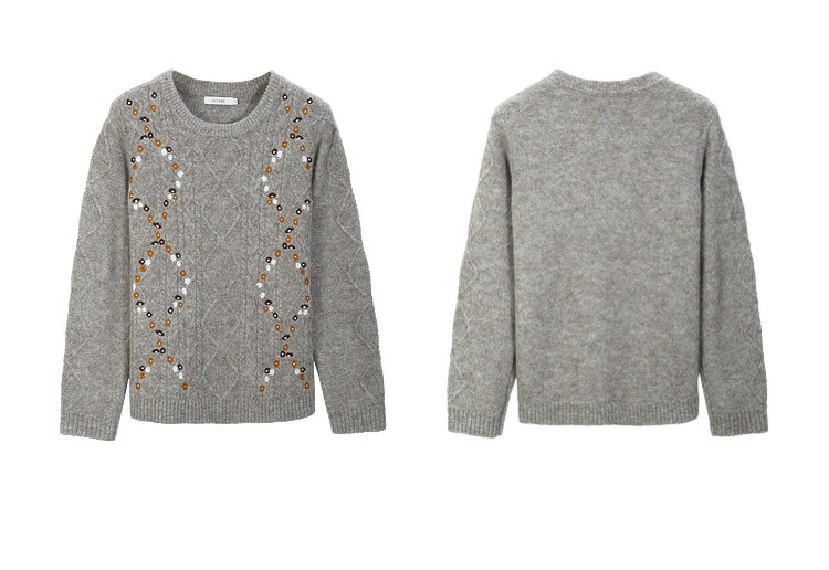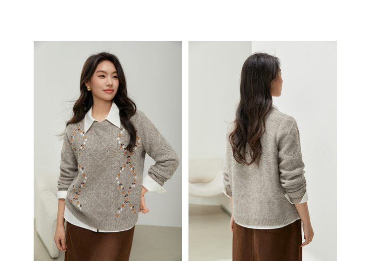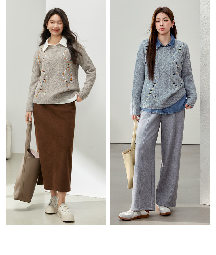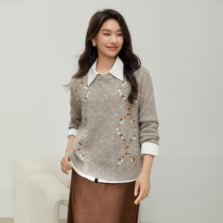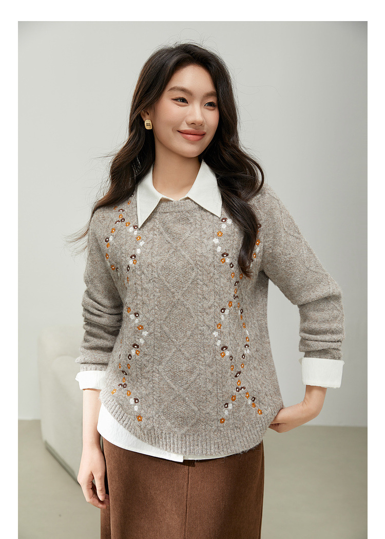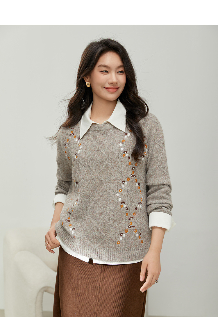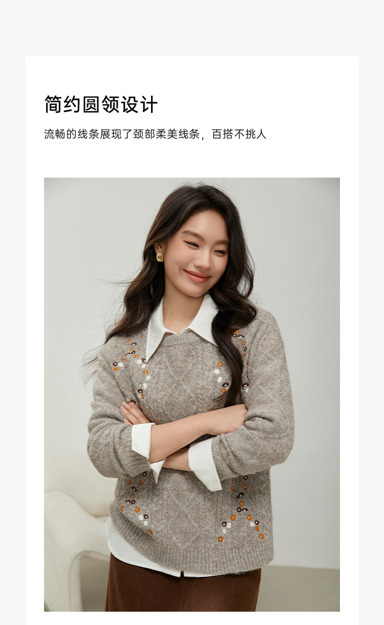 [Ретро нежный ветер вышитый дикий свитер с круглым вырезом] Цветное шоу большой размер женский толстый mm2025 весенний стиль новый