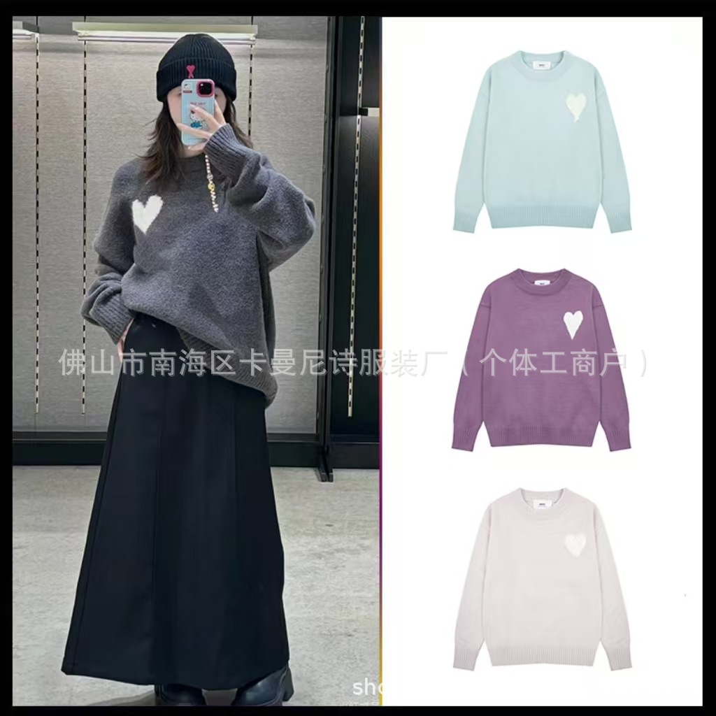 Трансграничный трикотаж AM, классический жаккардовый пуловер с круглым вырезом и большим сердцем, свободный повседневный трикотаж для ленивых, модная одежда для пар