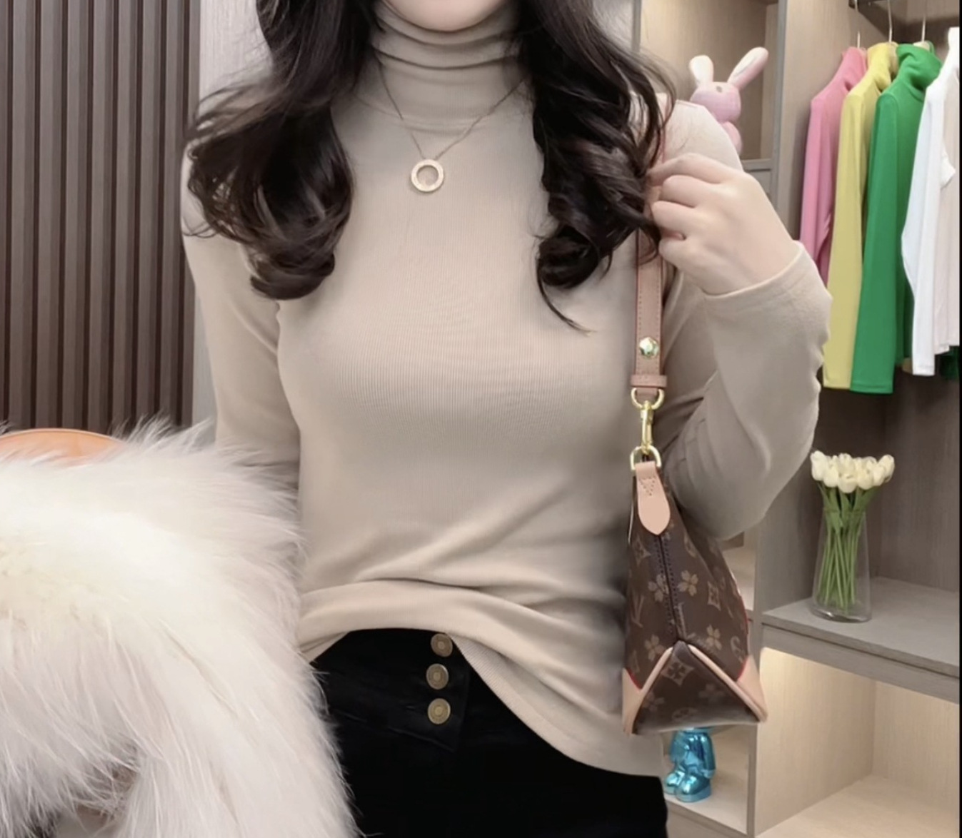 [Двусторонний бархат и шлифовальные волосы] Футболка с высоким воротником и воротником