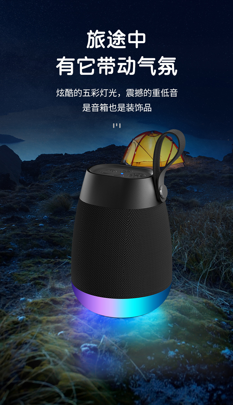 2022 новый красочный беспроводной динамик Bluetooth портативный большой объем наружная ткань водонепроницаемый маленький стерео оптом
