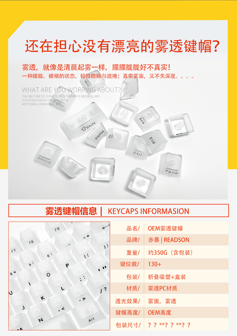 [O EM Туман] Небольшой полный набор в штучной коробке без гравировки на стороне гравюры ПК прозрачный материал механическая клавиатура колпачок