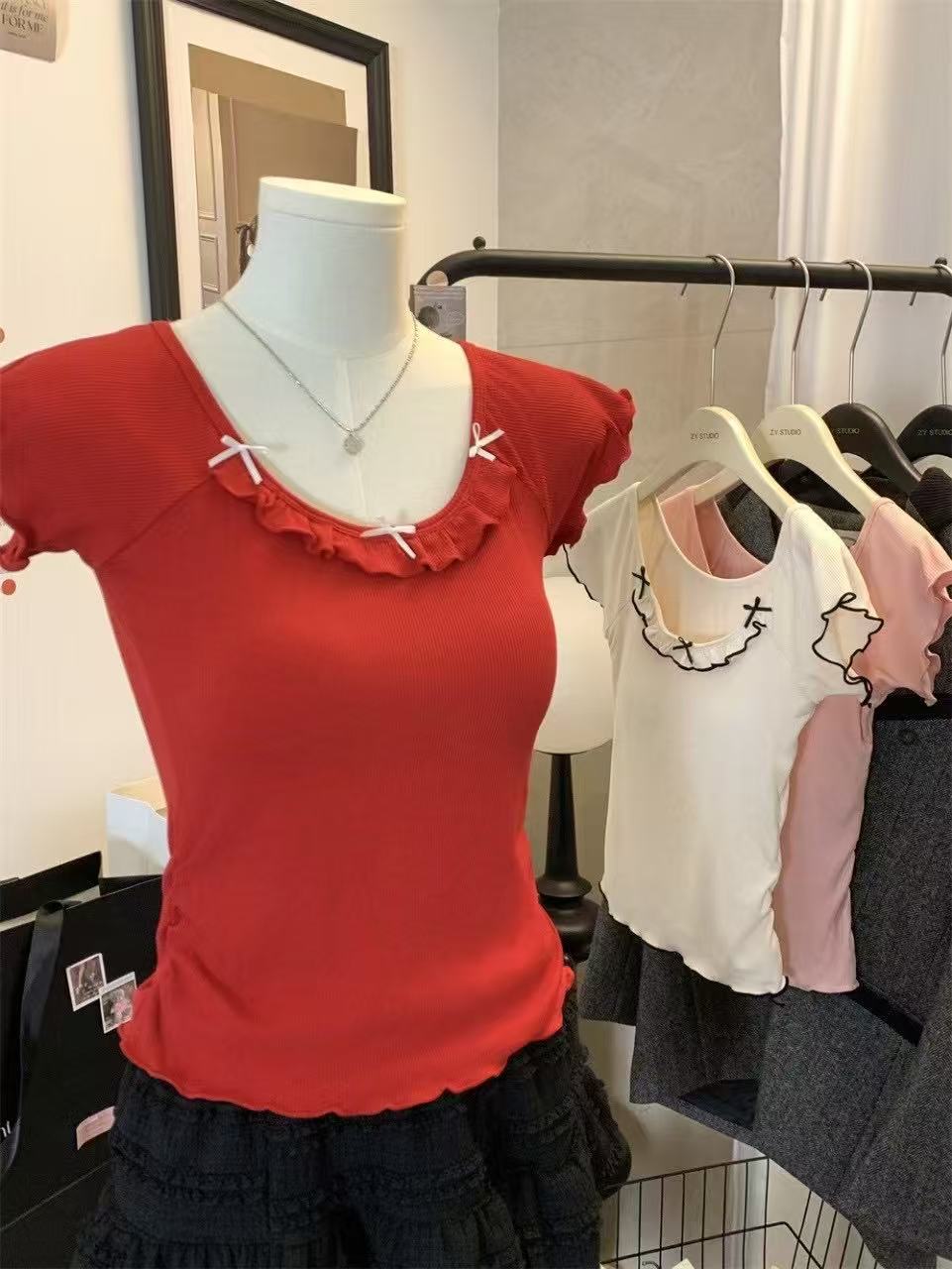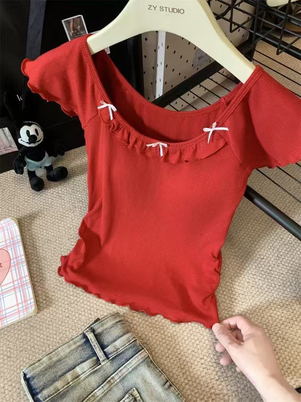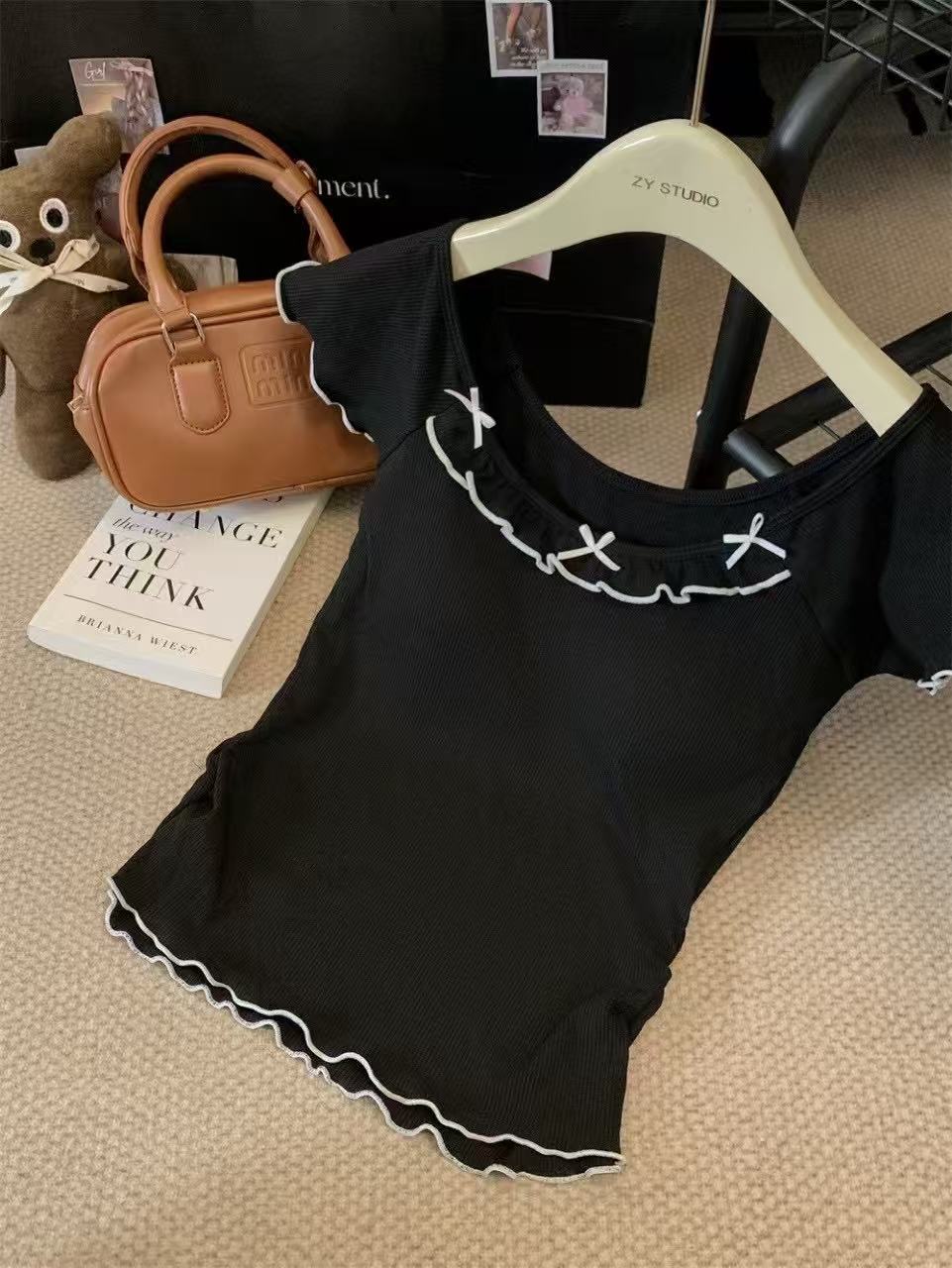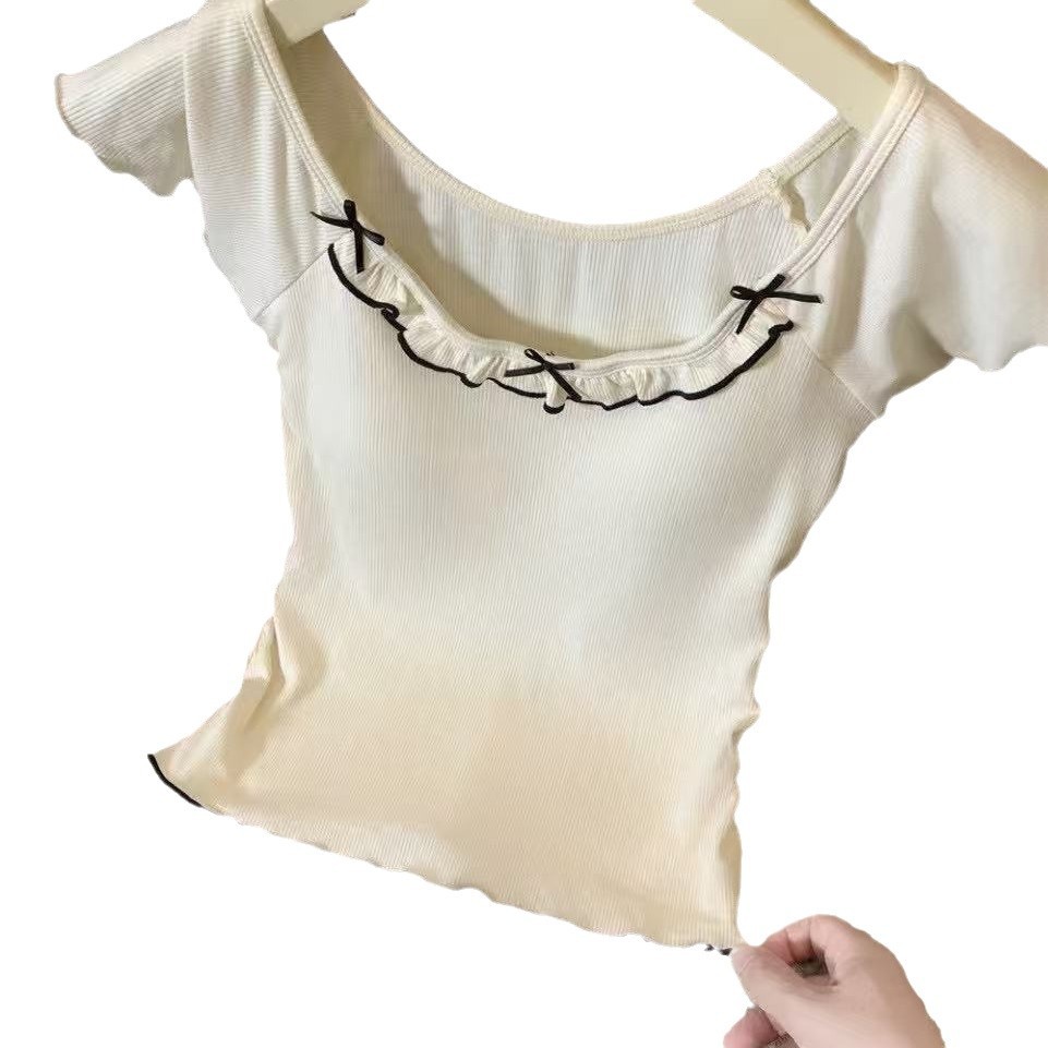 Дизайн с бантиком чистый ветер с короткими рукавами футболка женская с нагрудным ковриком